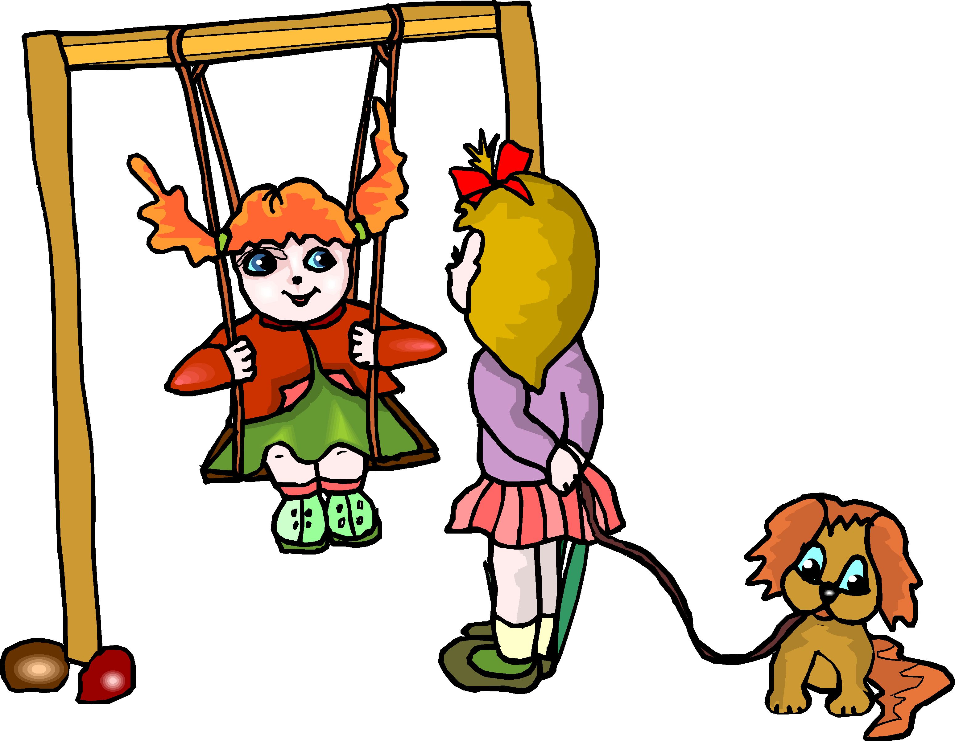Girls on Swing Clip Art, Kids' Stuff