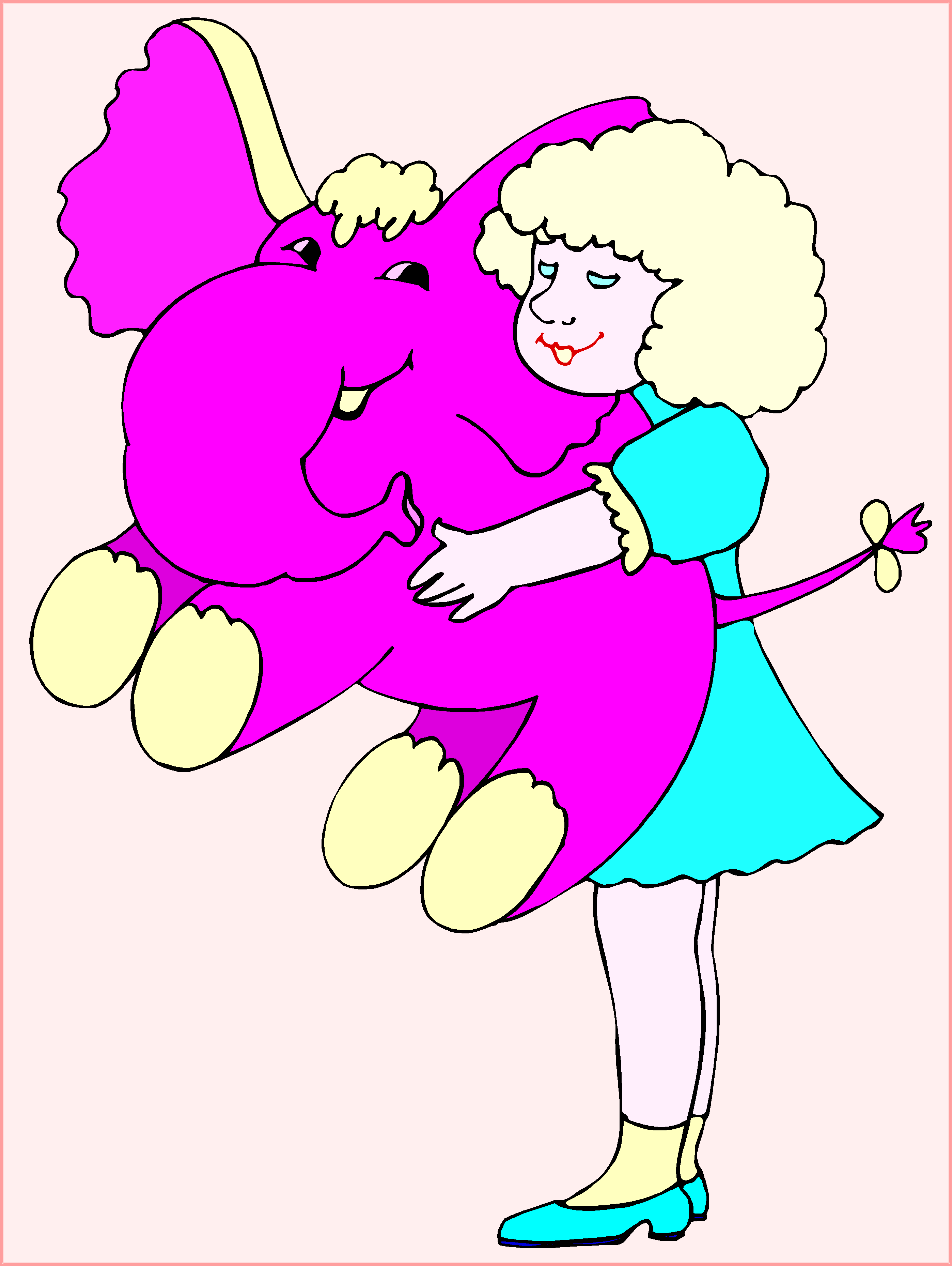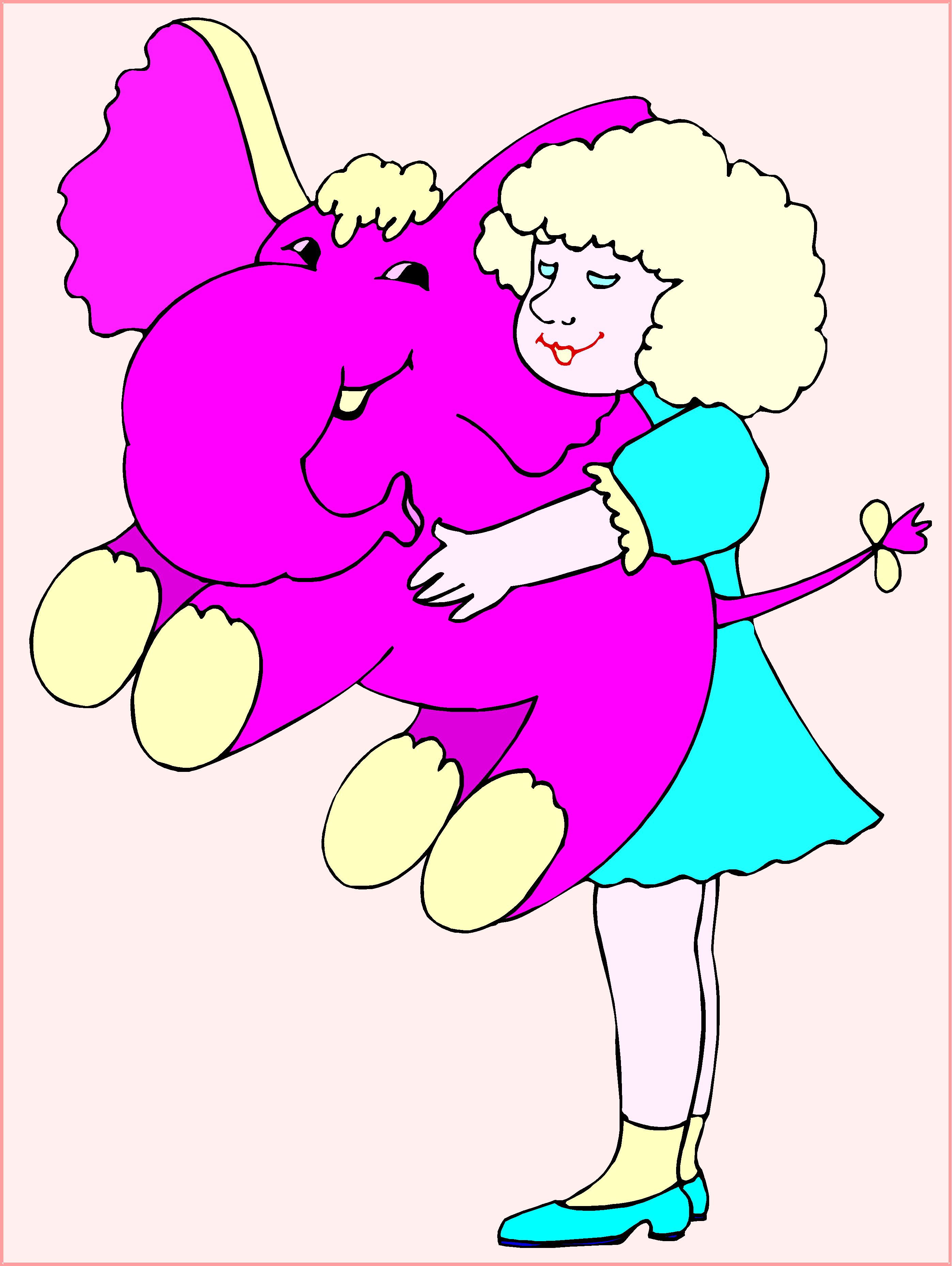 Girl with Pink Elephant Clip Art, Kids' Stuff