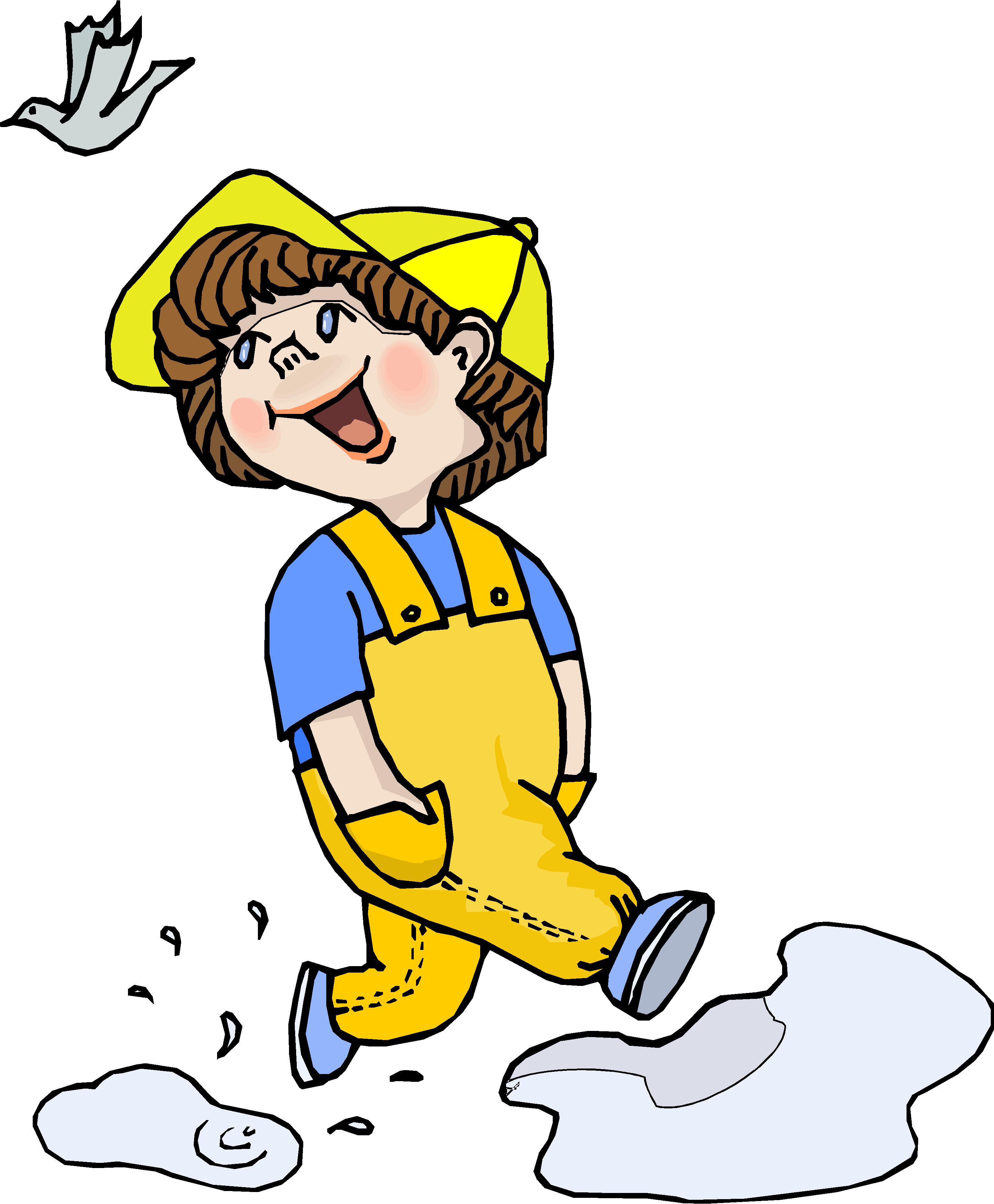 Boy Walking in Puddles Clip Art, Kids' Stuff
