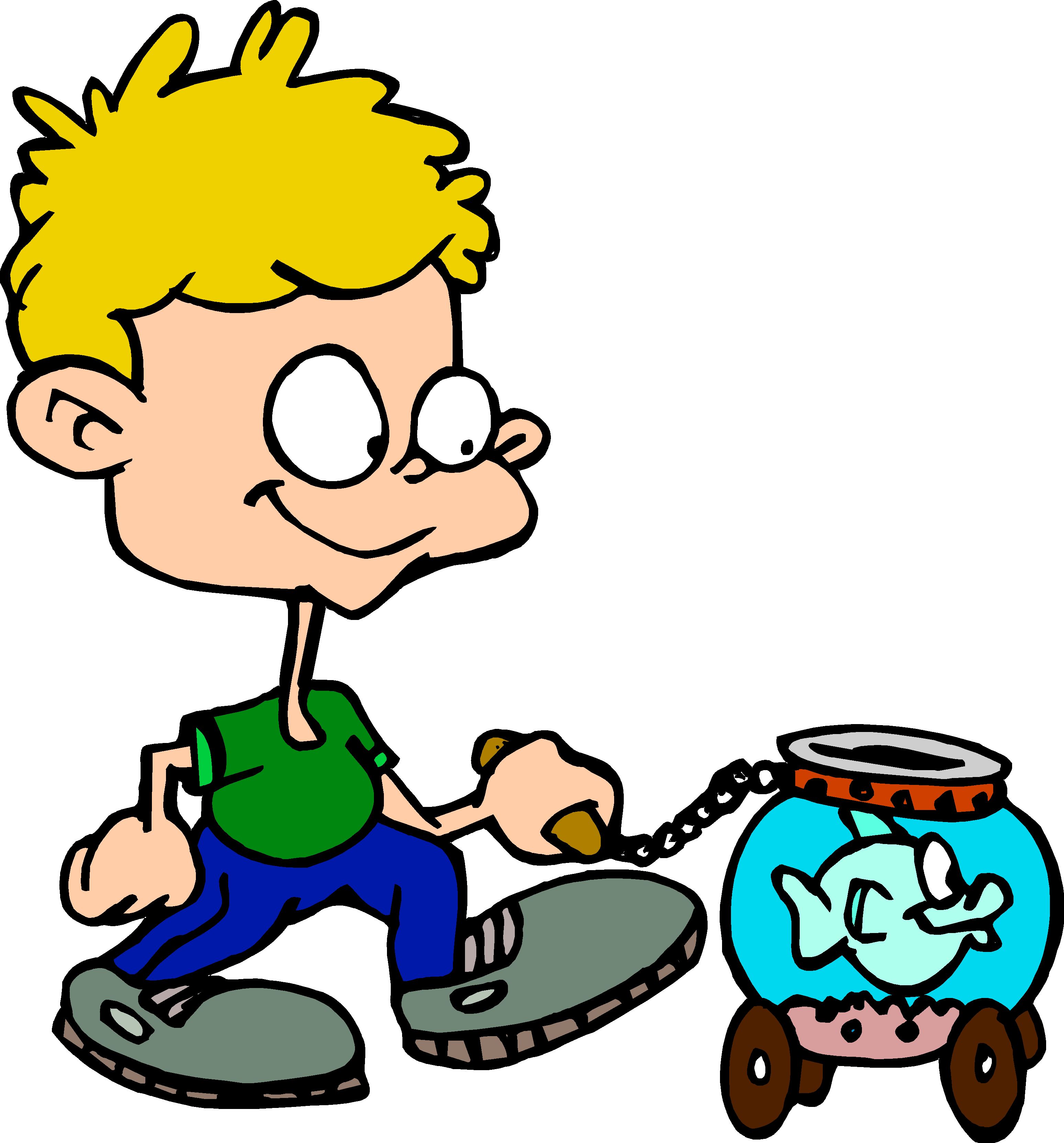 Boy Walking Fish Clip Art, Kids' Stuff