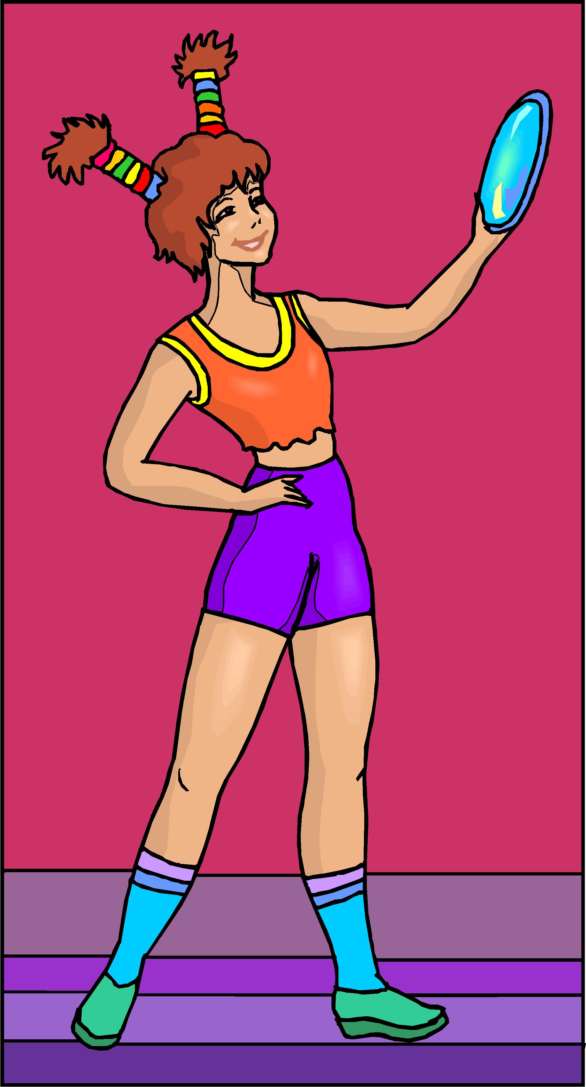 Girl with Flying Disk Clip Art, People