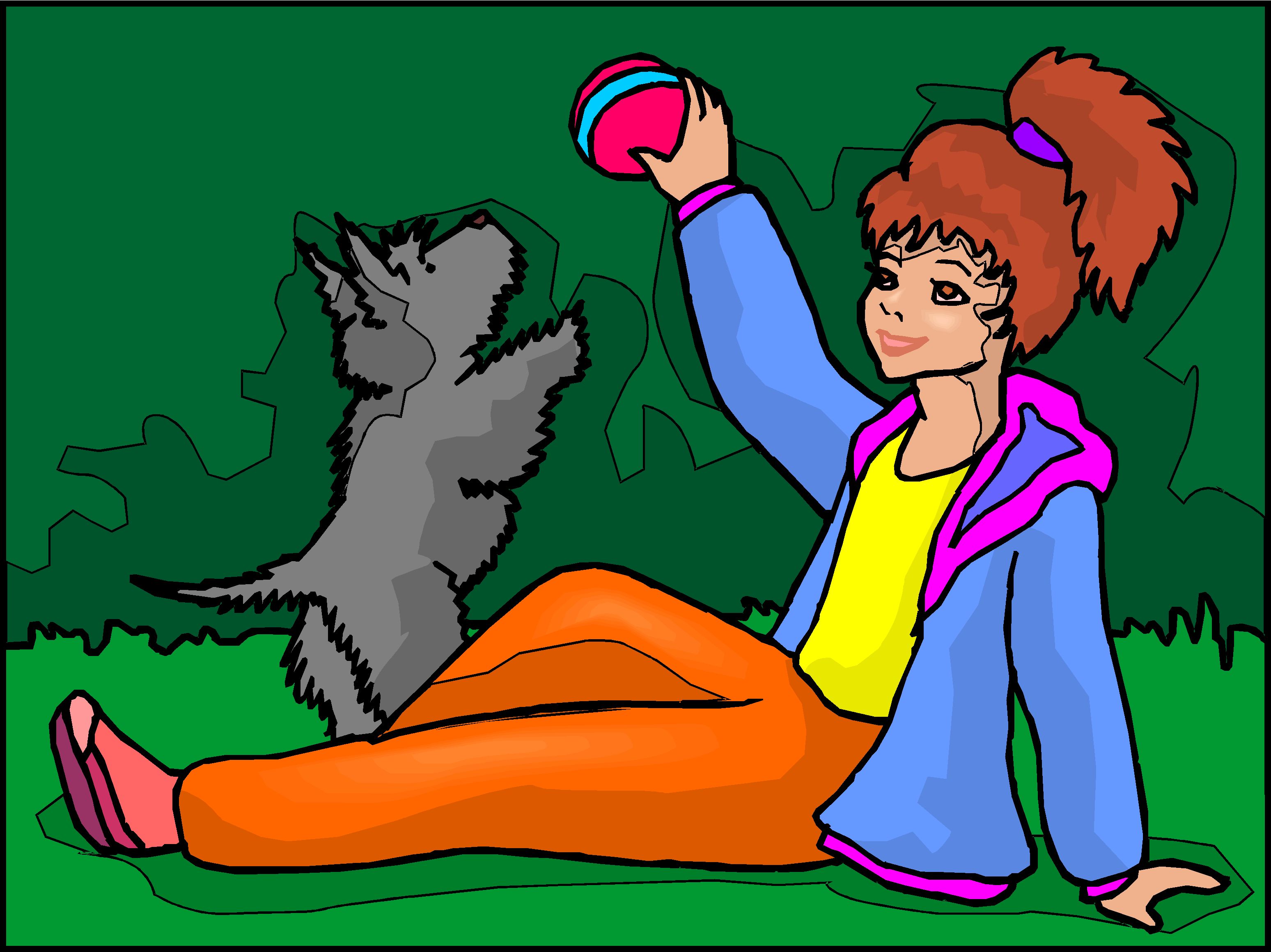 Girl with Dog 2 Clip Art, People