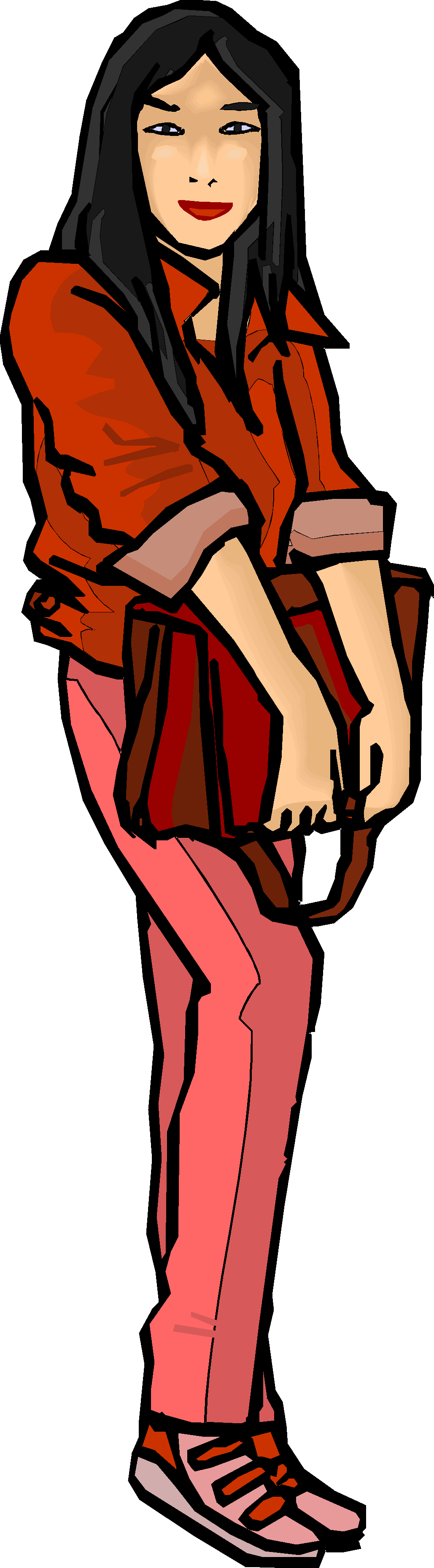 Girl with Bag 1 Clip Art, People