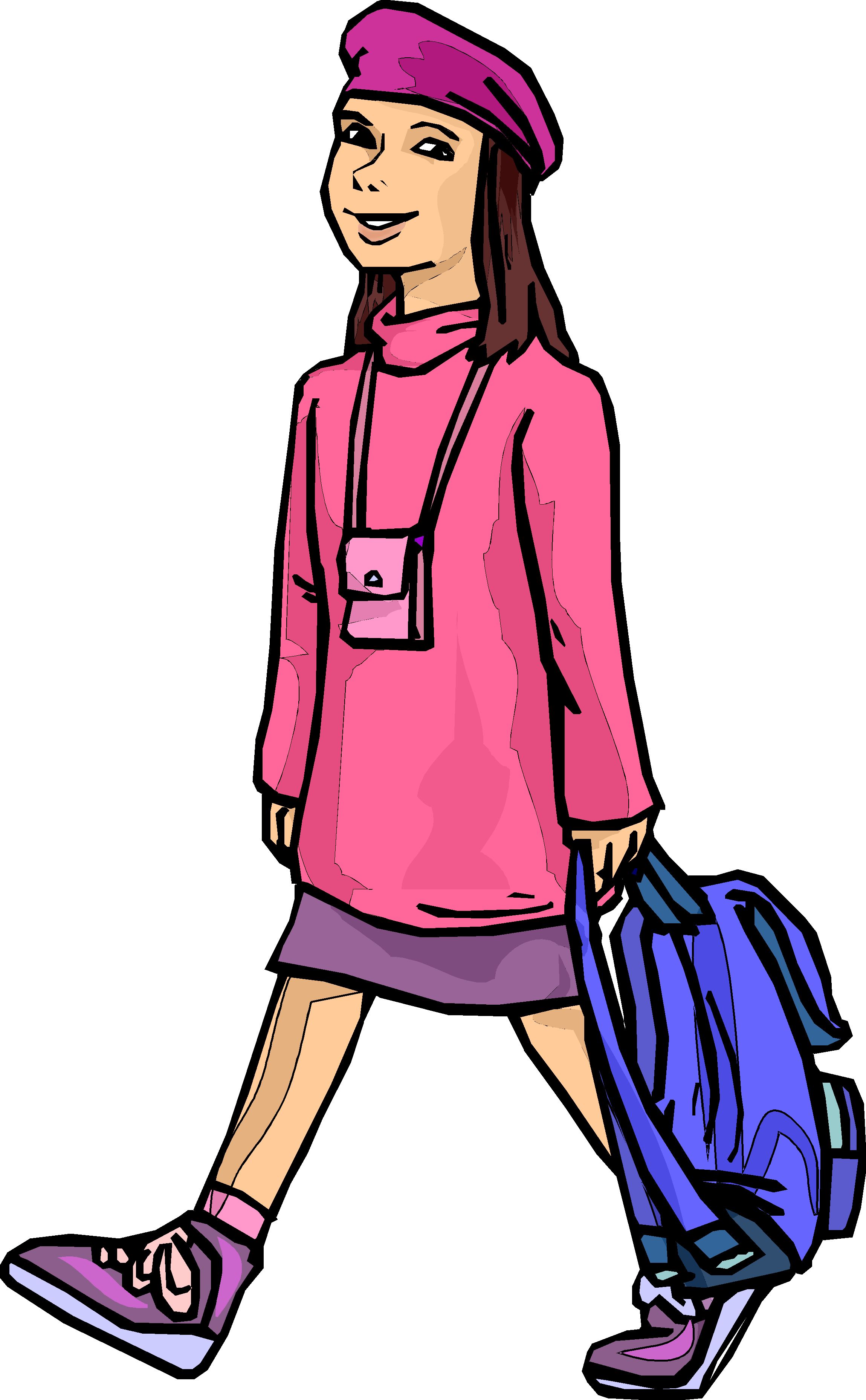 Girl with Backpack 2 Clip Art, People