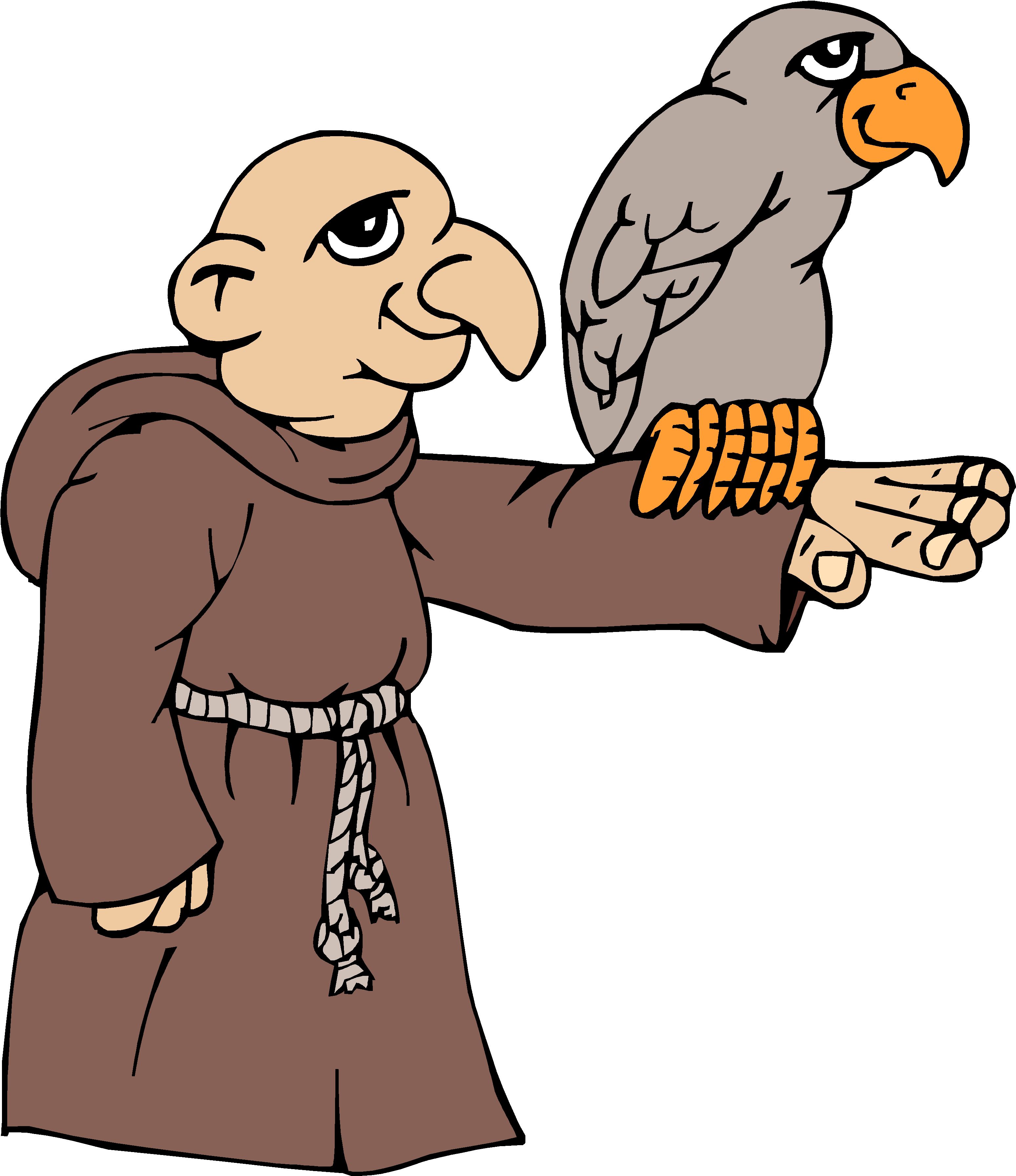 Monk with Bird Clip Art, People