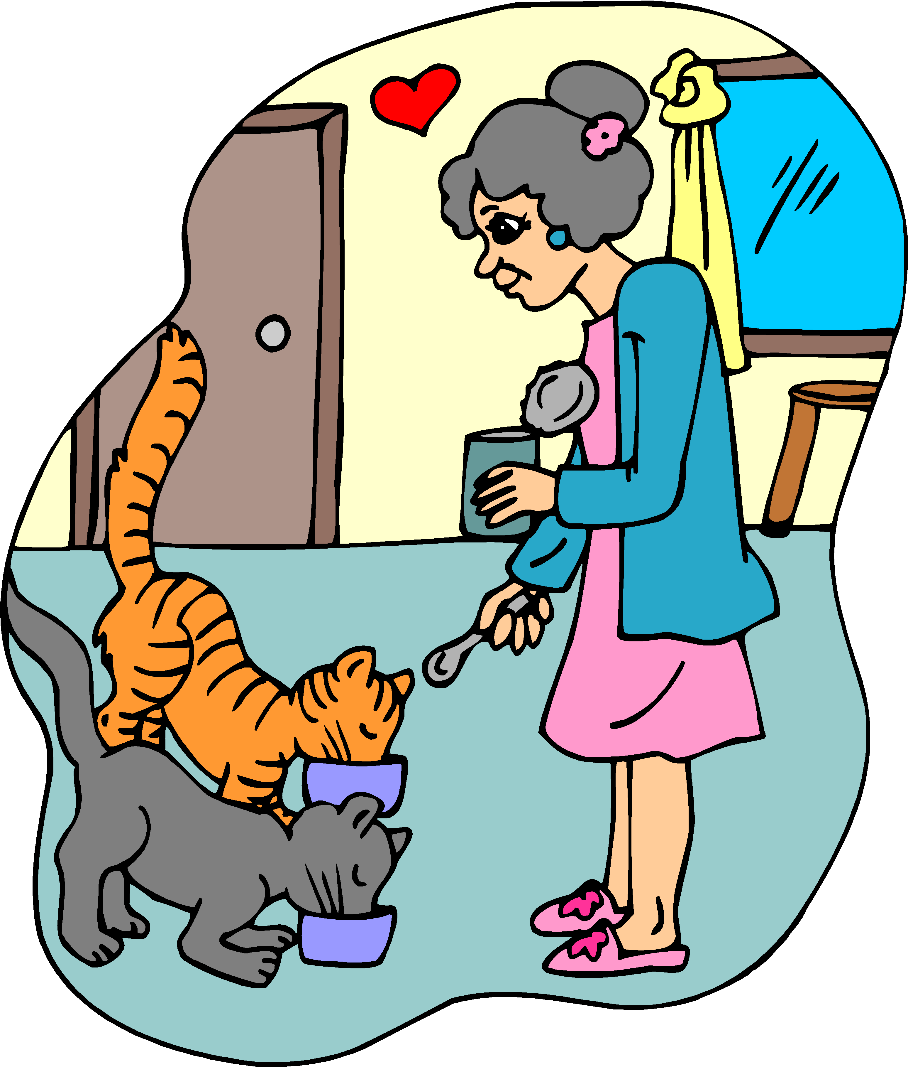 Feeding Cats Clip Art, People