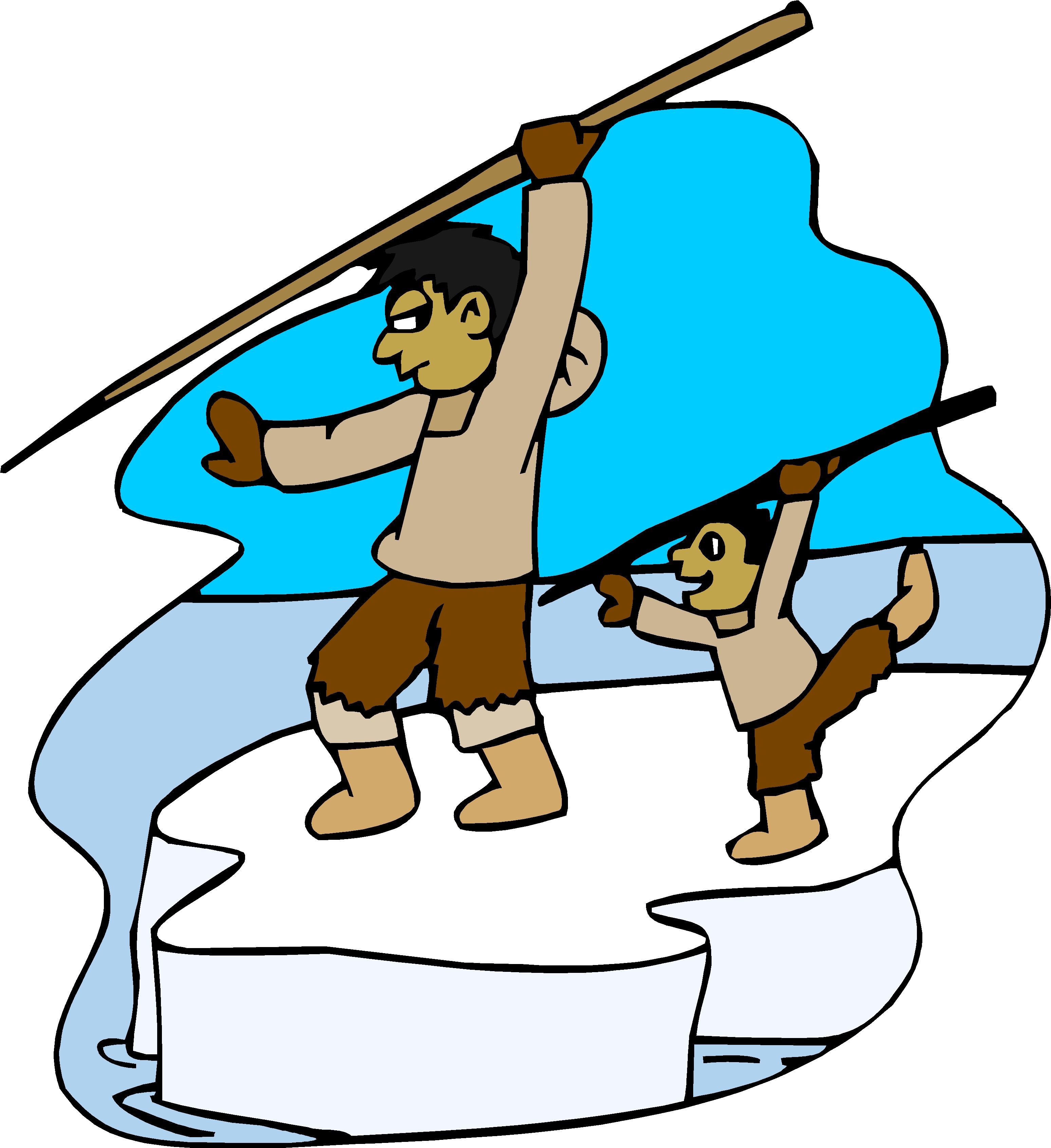 Eskimo Father & Son Hunting Clip Art, People