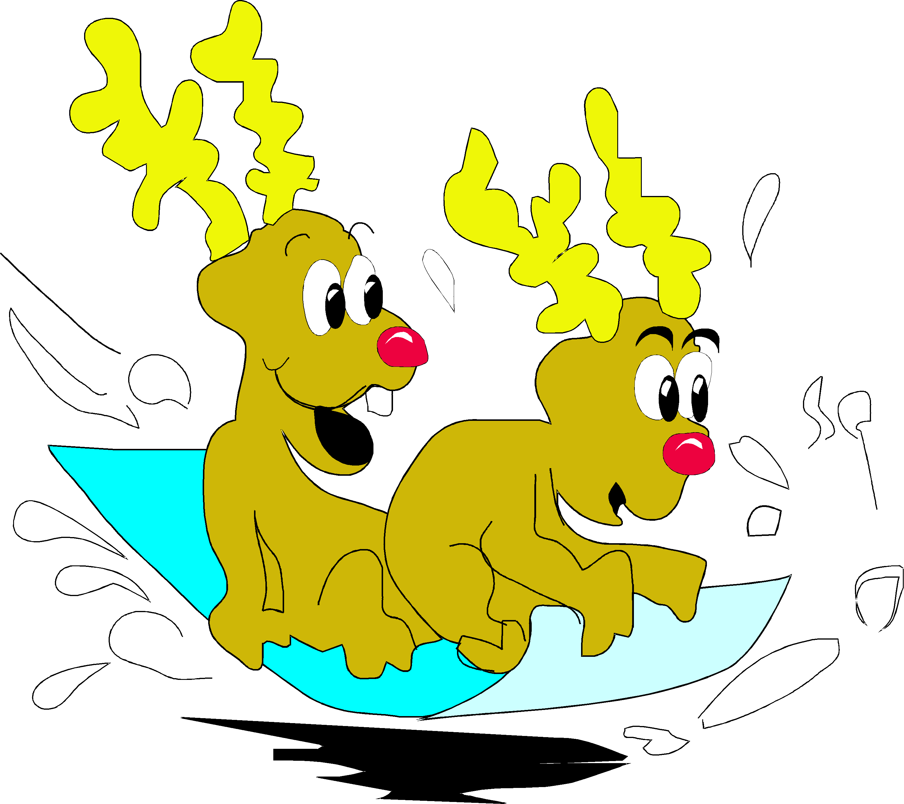 Reindeer on Toboggan 6 Clip Art, Holidays