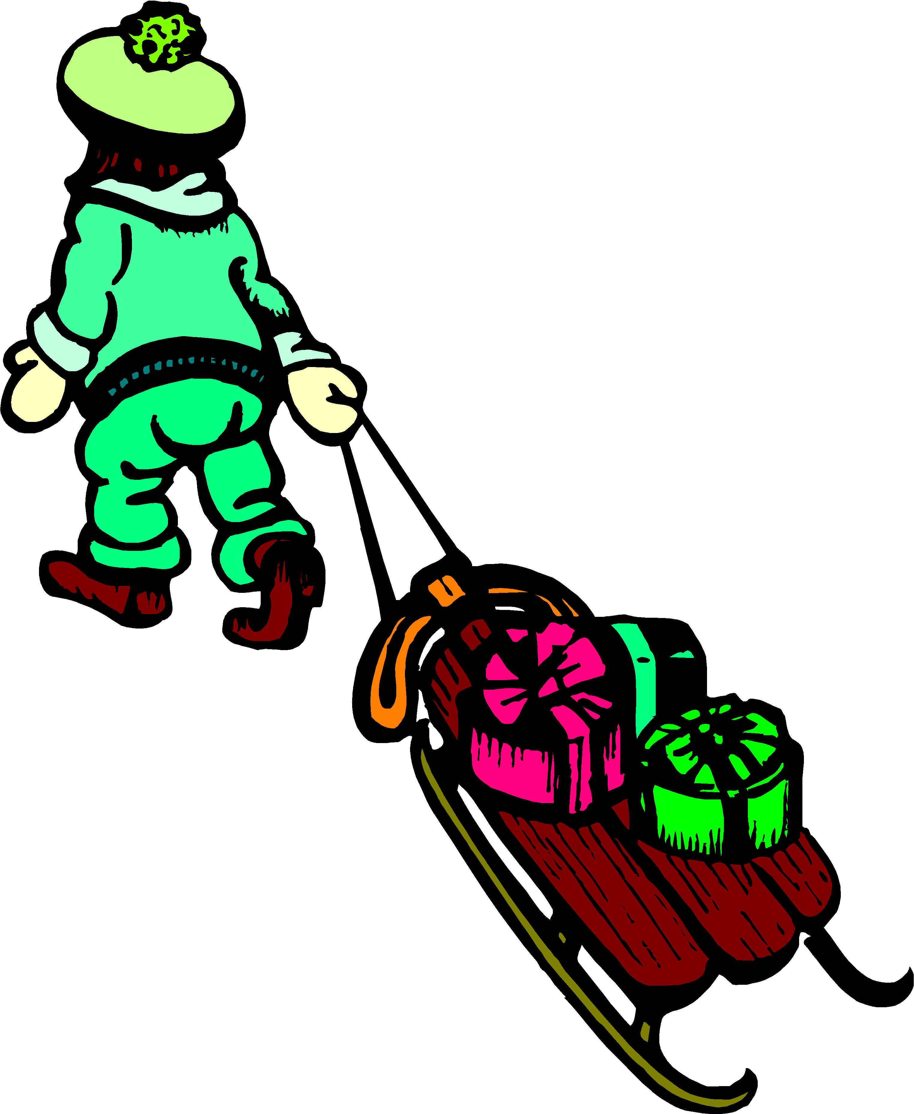 Girl with Sled & Gifts Clip Art, Holidays