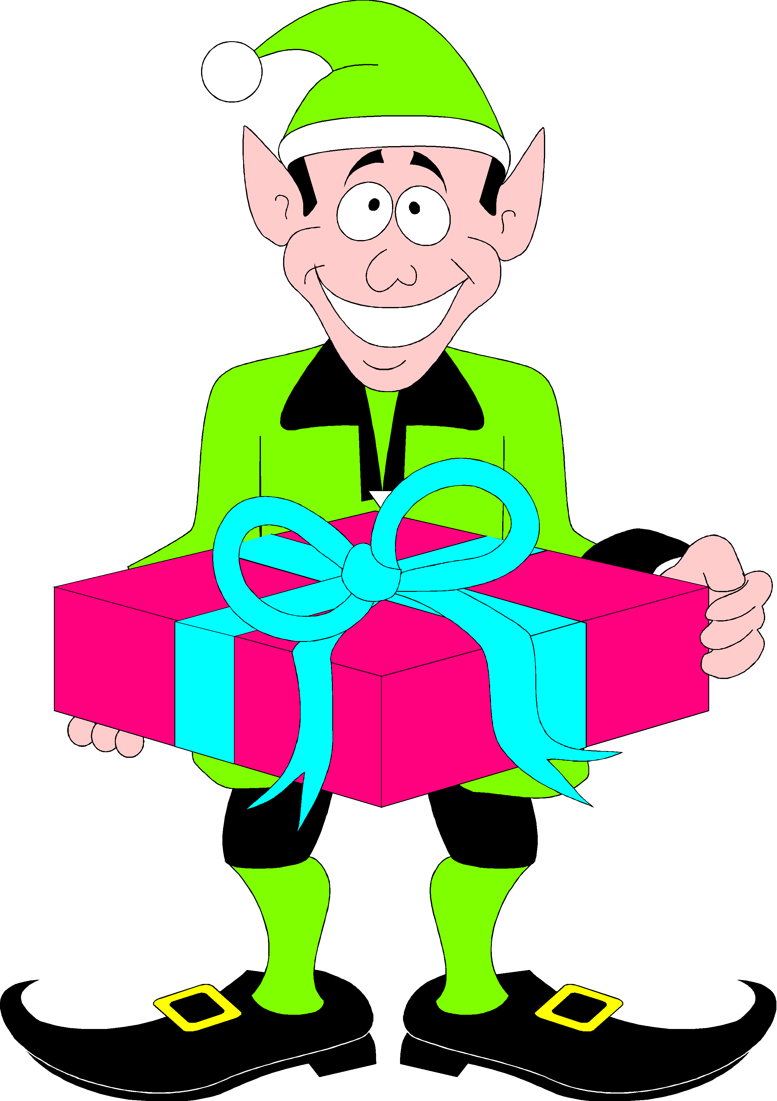 Elf with Gift 1 Clip Art, Holidays