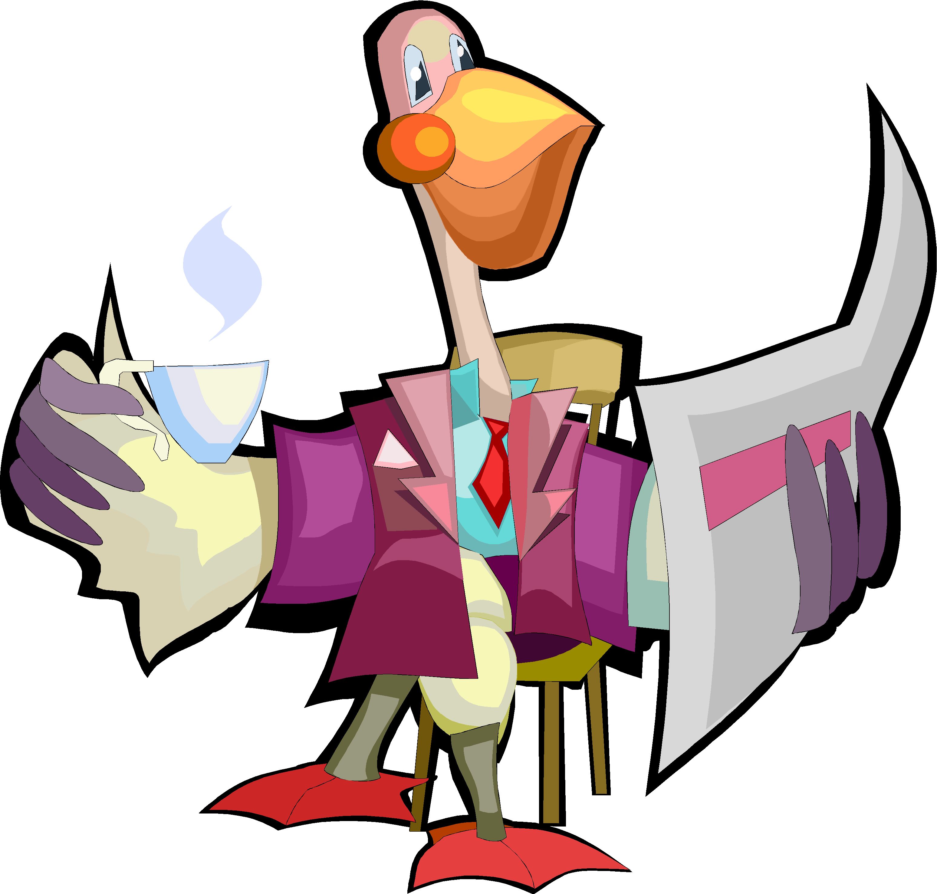 Pelican Drinking Tea Clip Art, Animals
