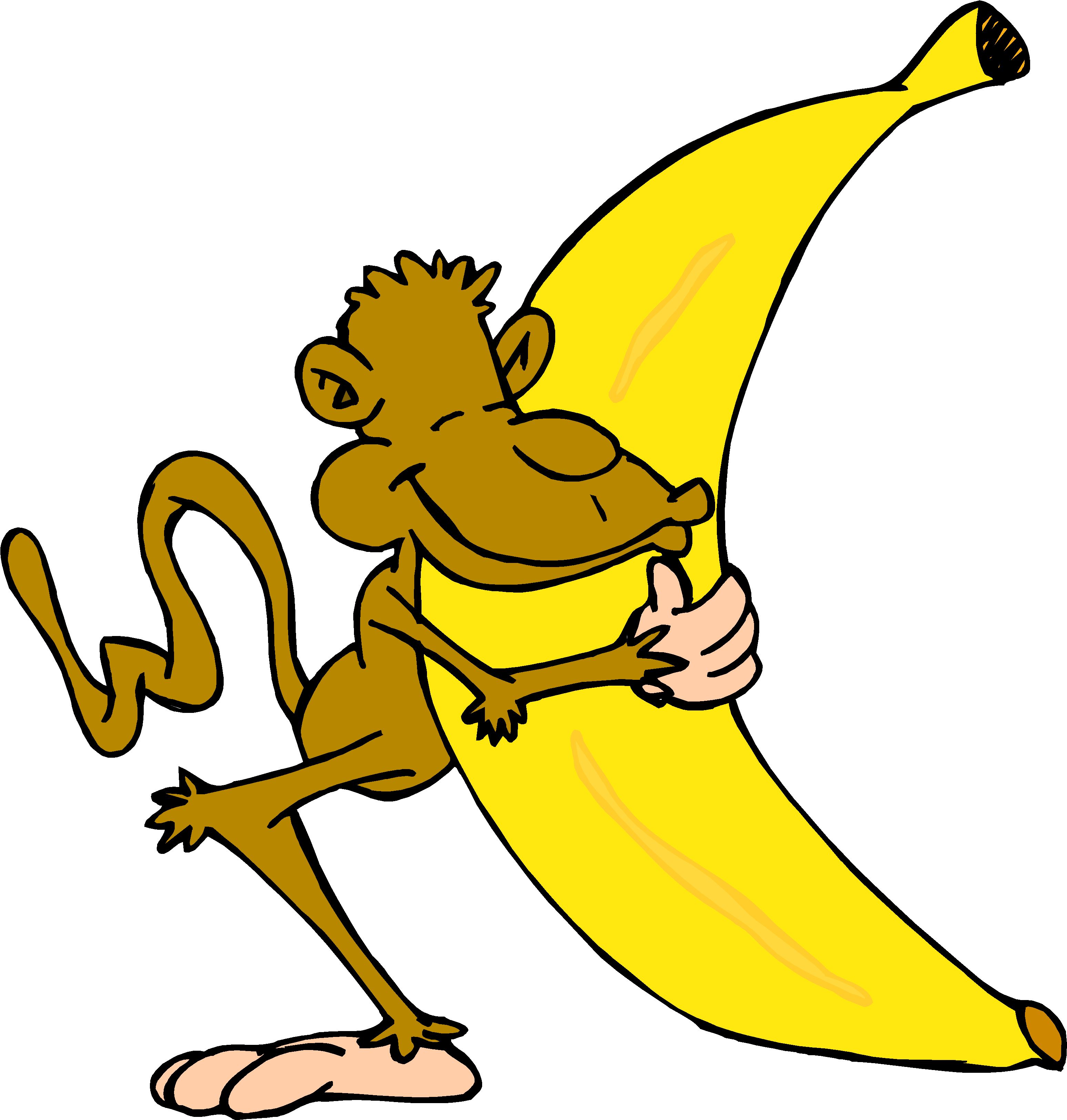 Monkey with Large Banana 2 Clip Art, Animals