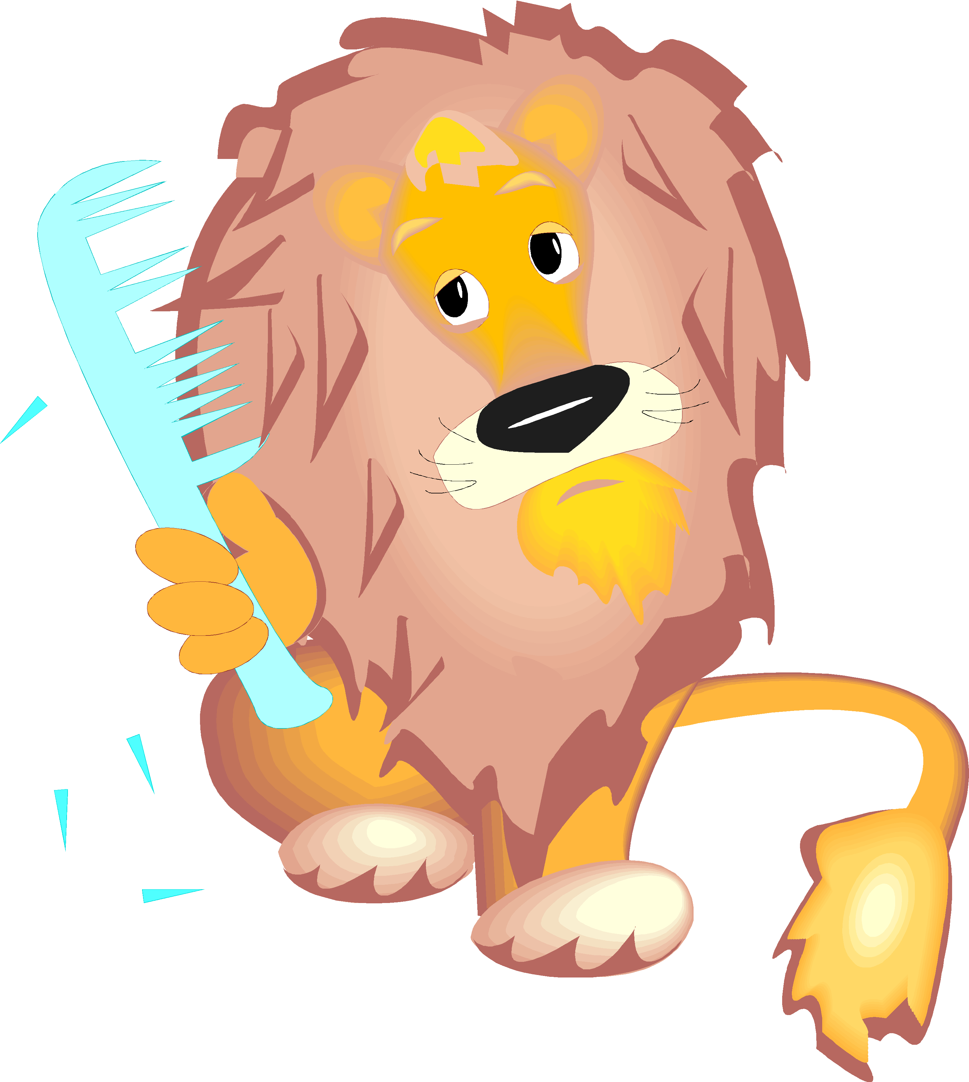 Lion Combing Mane Clip Art, Animals