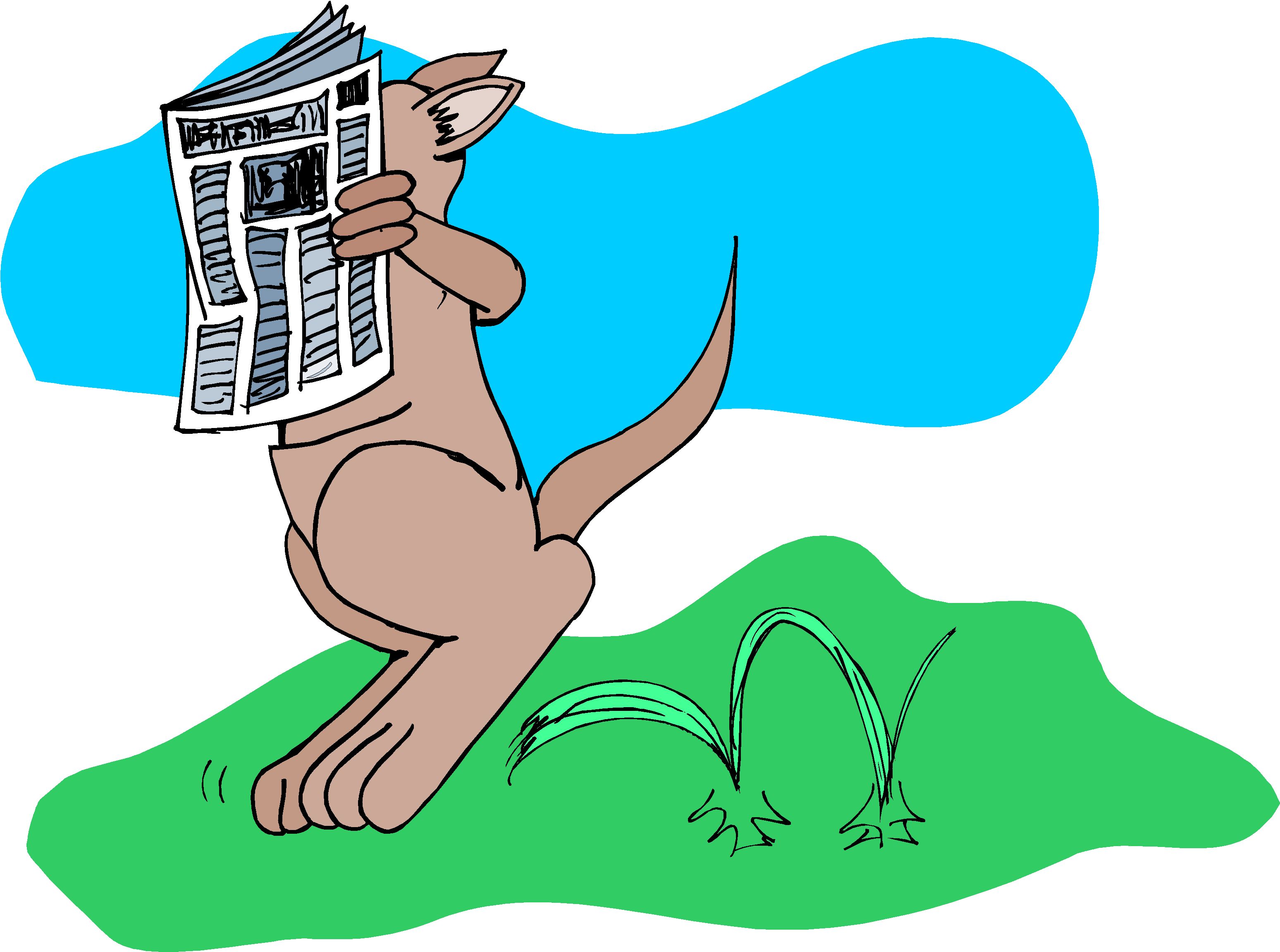 Kangaroo Reading Paper Clip Art, Animals