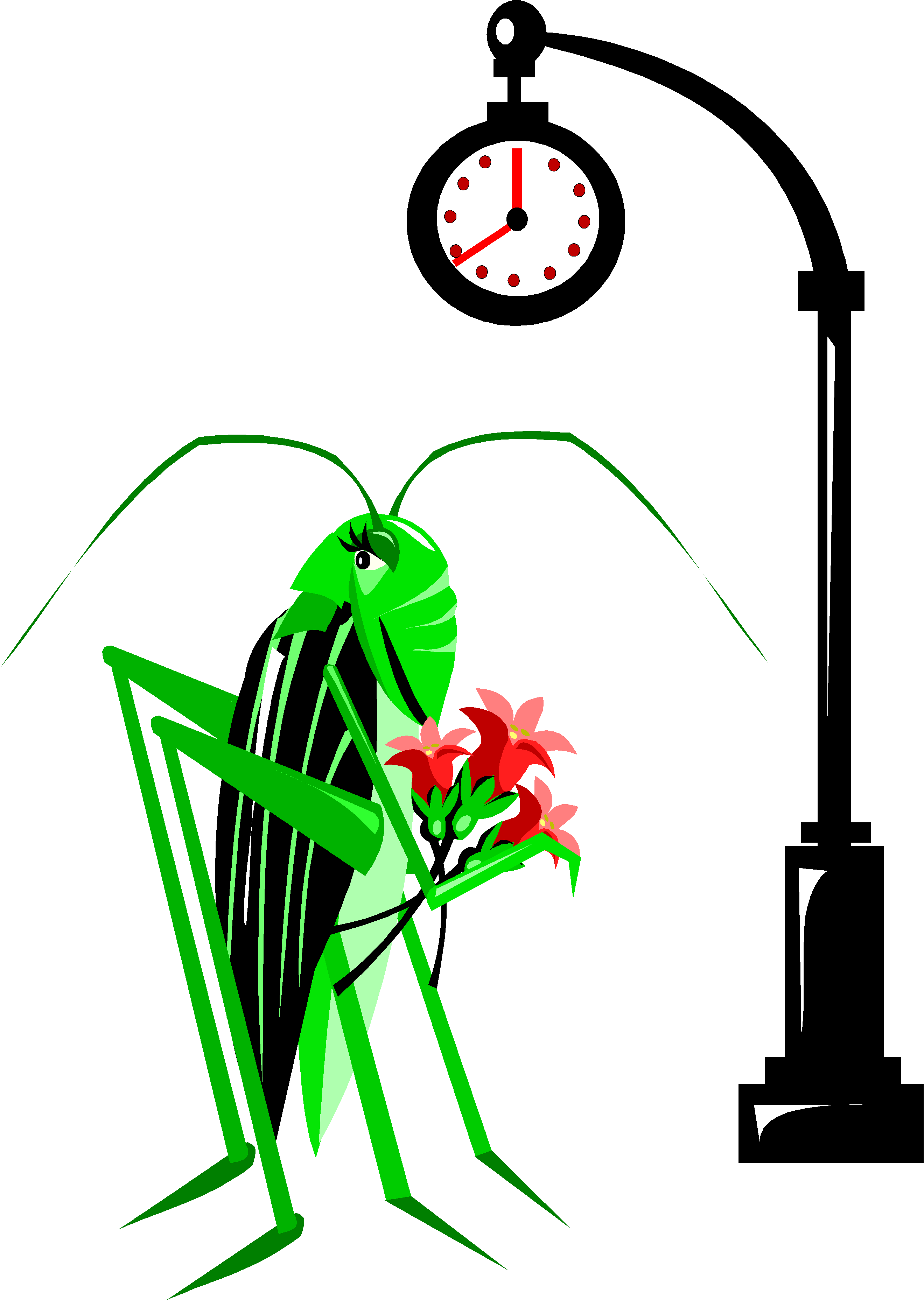 Grasshopper with Flowers Clip Art, Animals