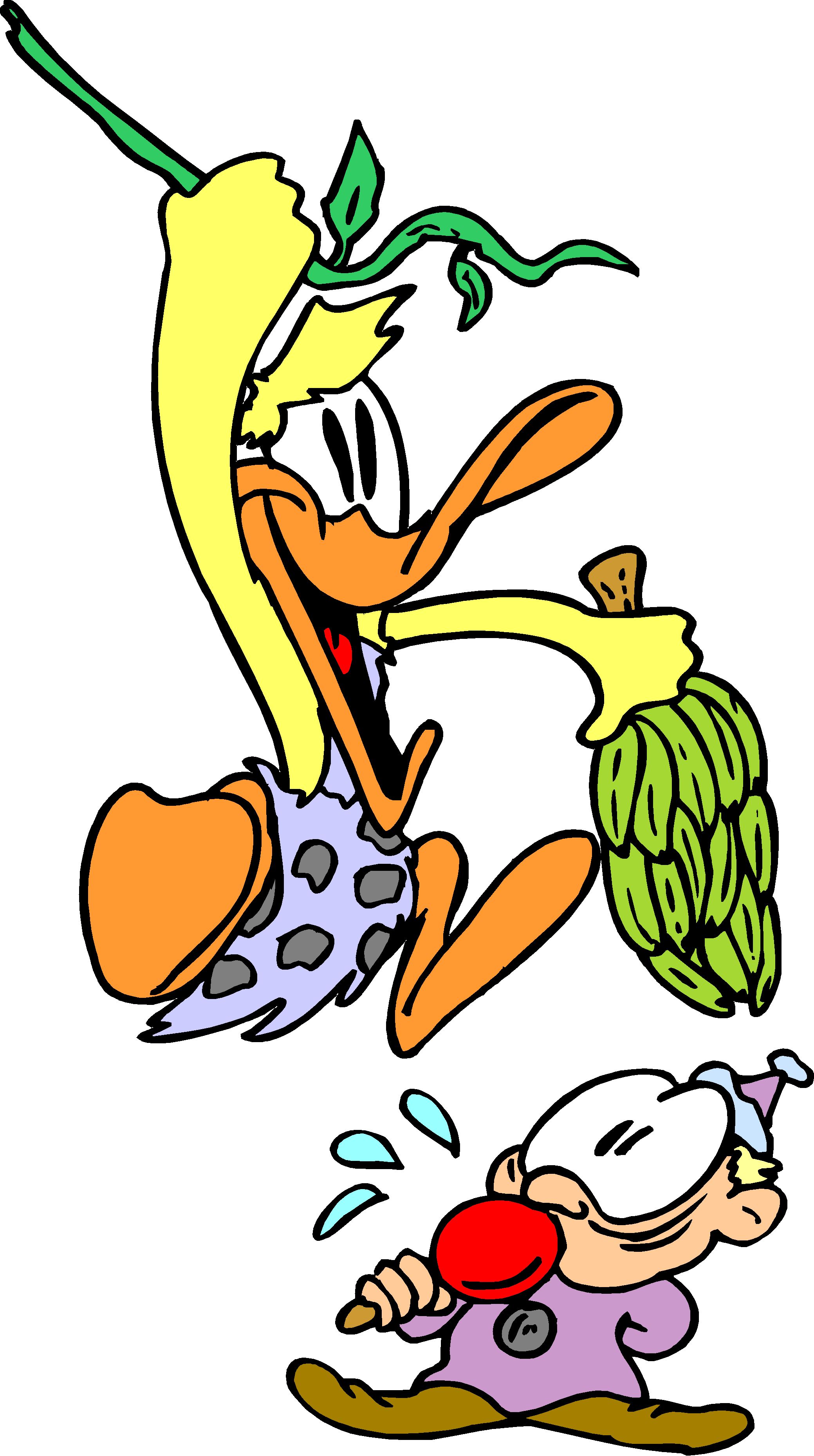 Duck Swinging with Bananas Clip Art, Animals