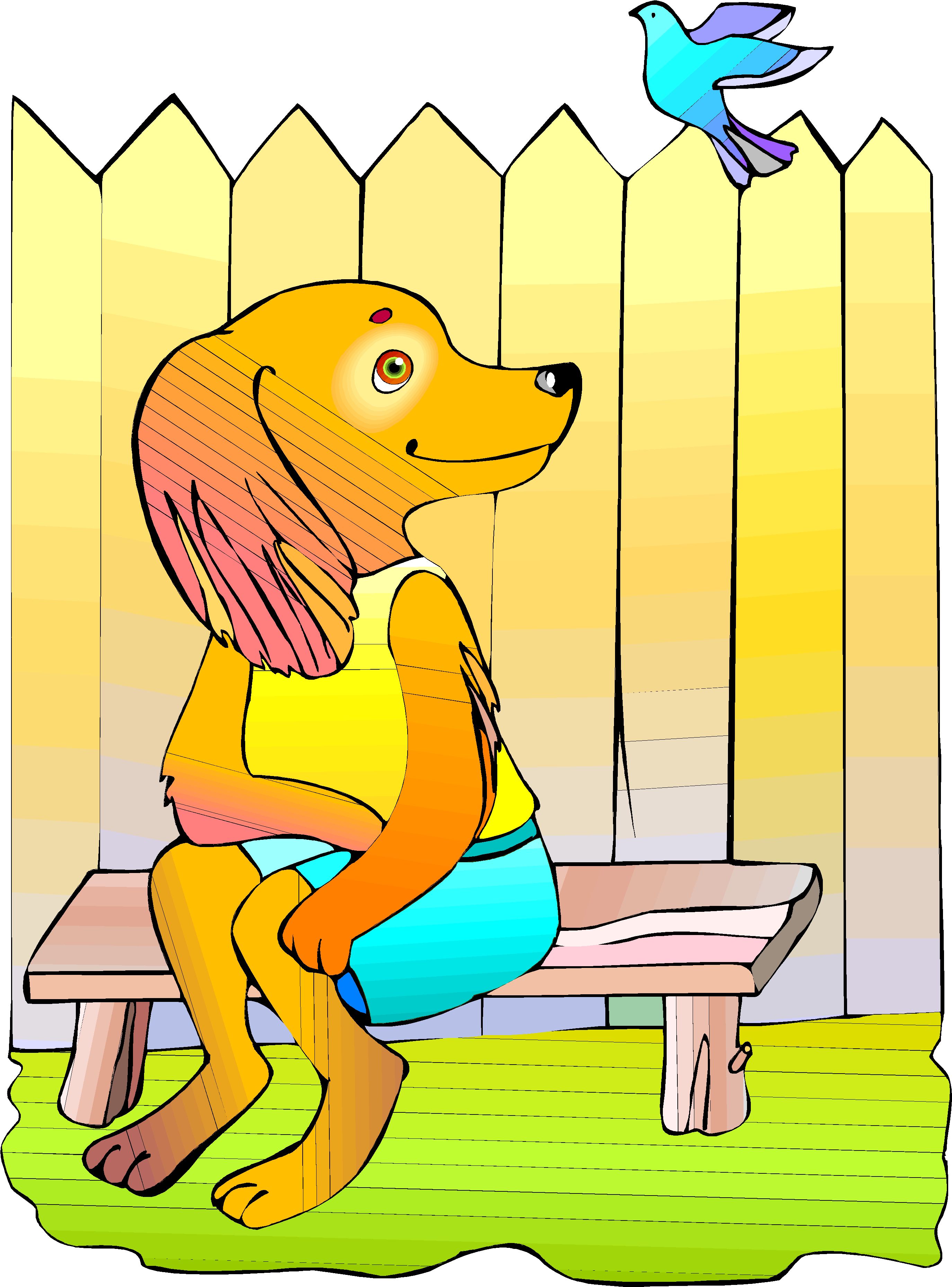 Dog Sitting on Bench Clip Art, Animals