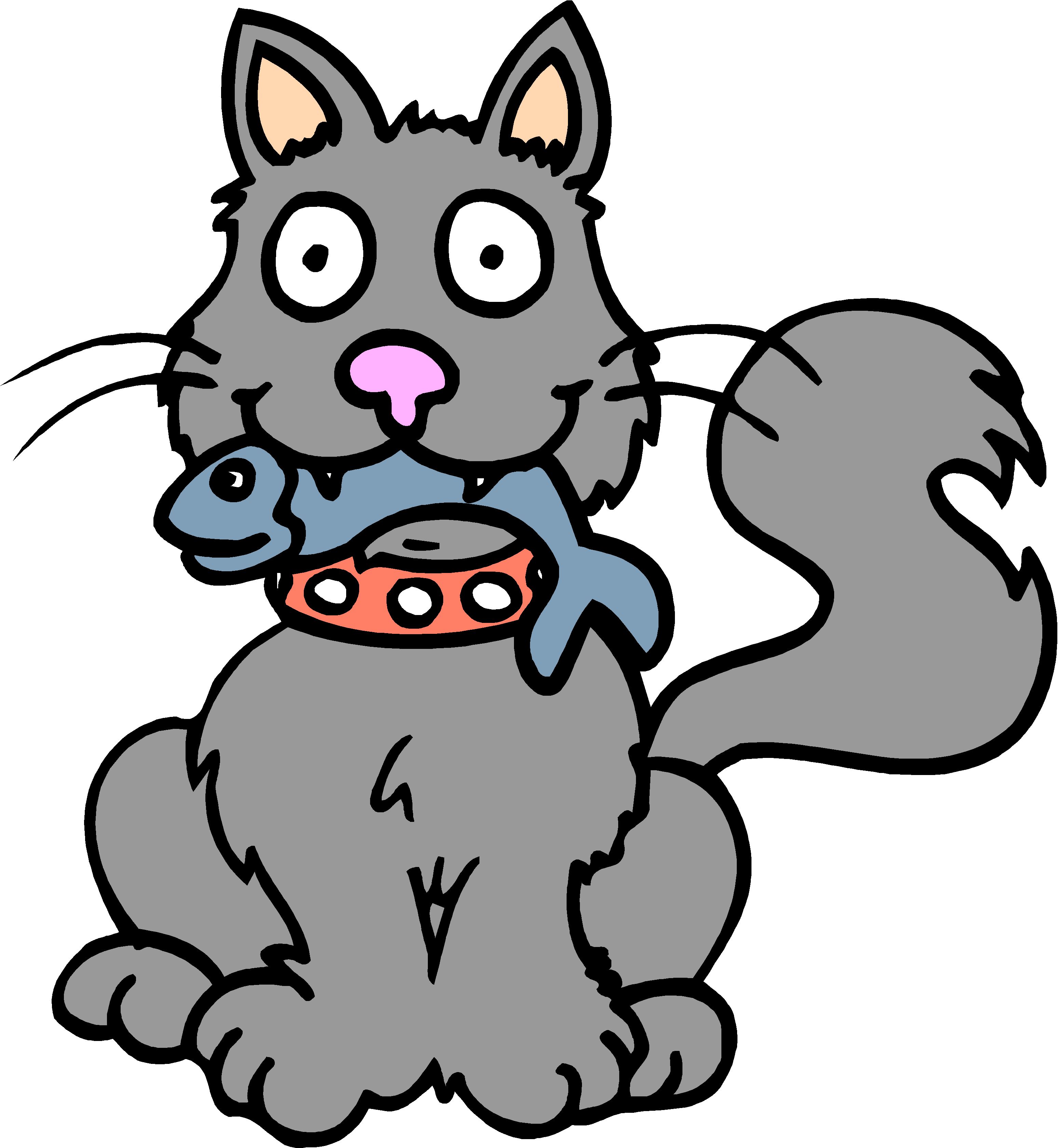 Cat with Fish Clip Art, Animals