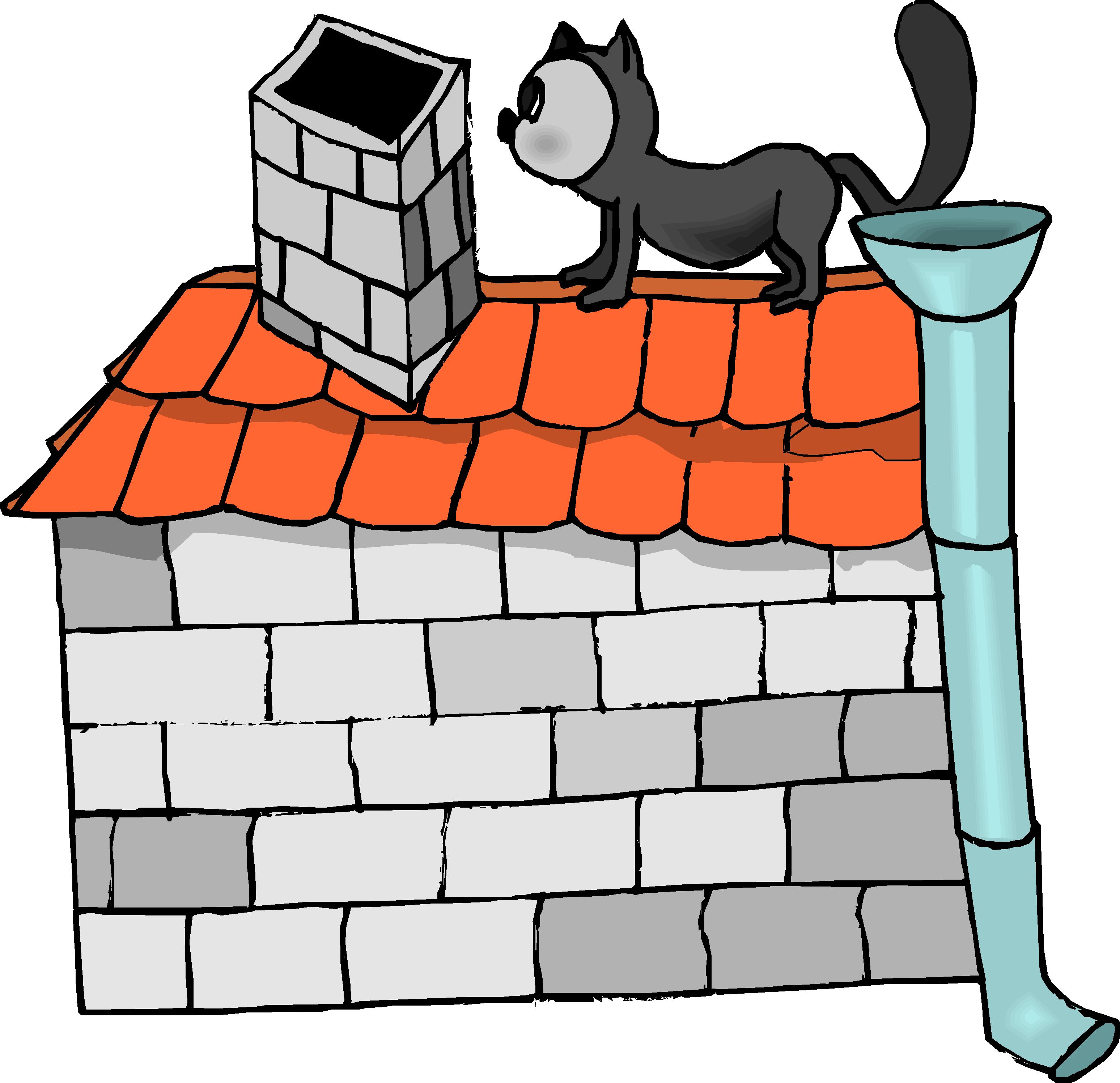 Cat on House Clip Art, Animals