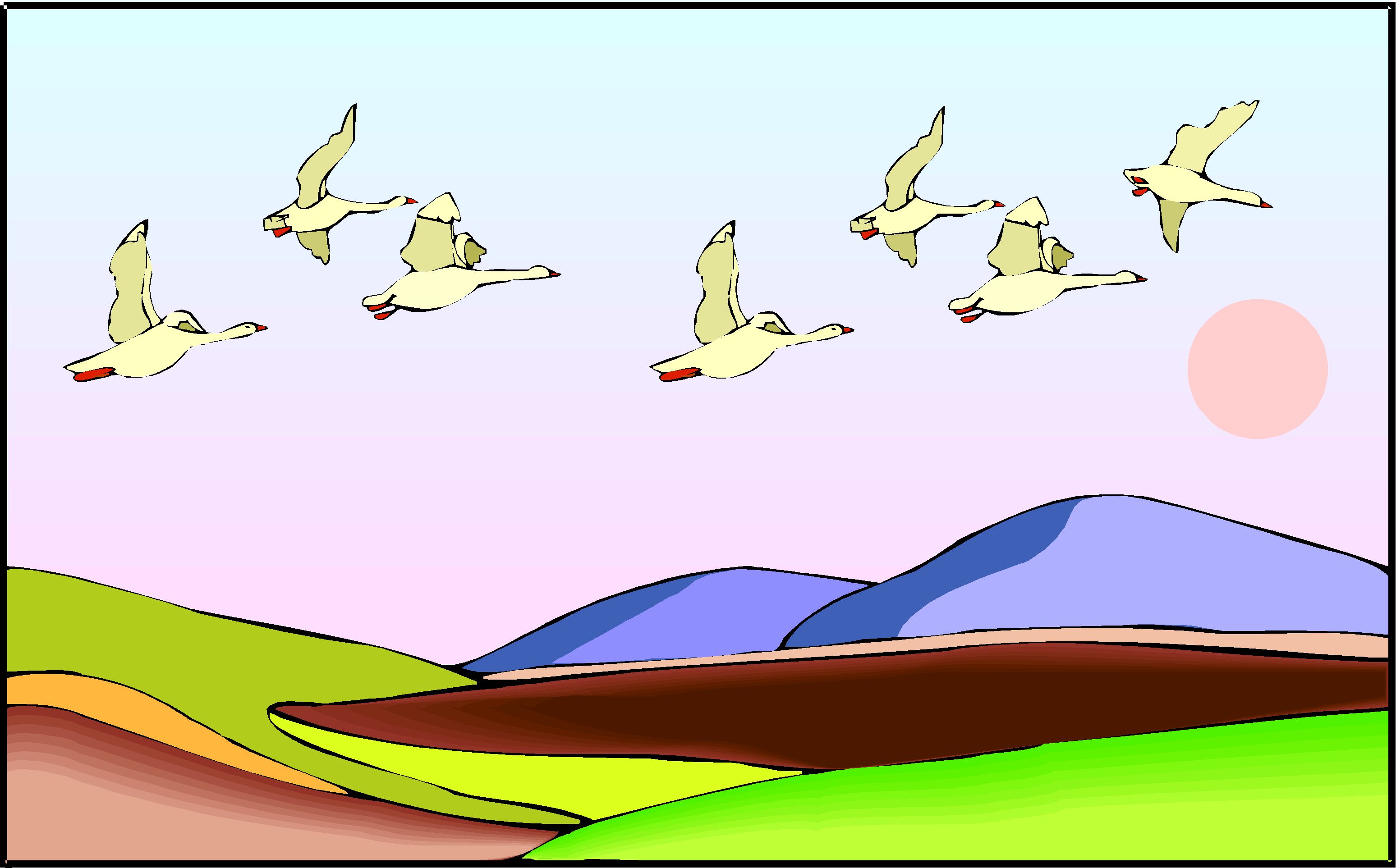 Geese Flying 2 Clip Art, Animals