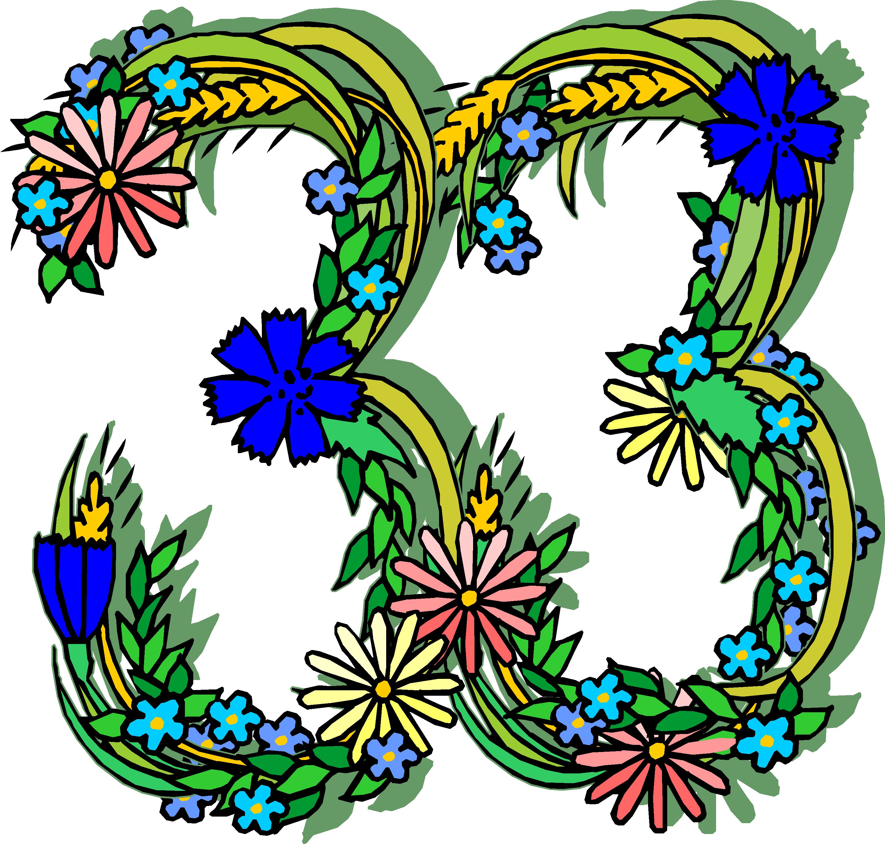 Flowery 33 Clip Art, Alphabets - General