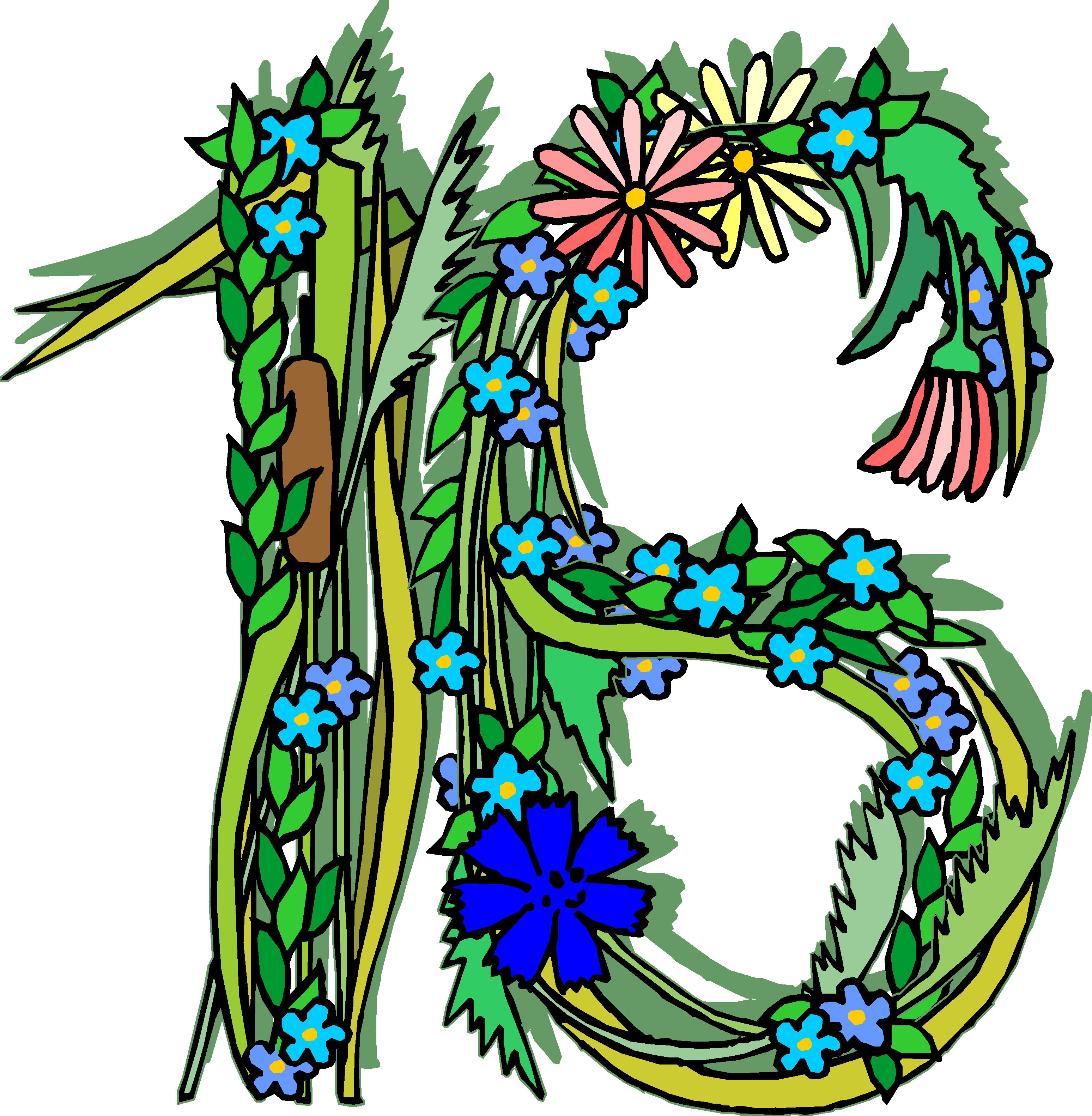 Flowery 16 Clip Art, Alphabets - General