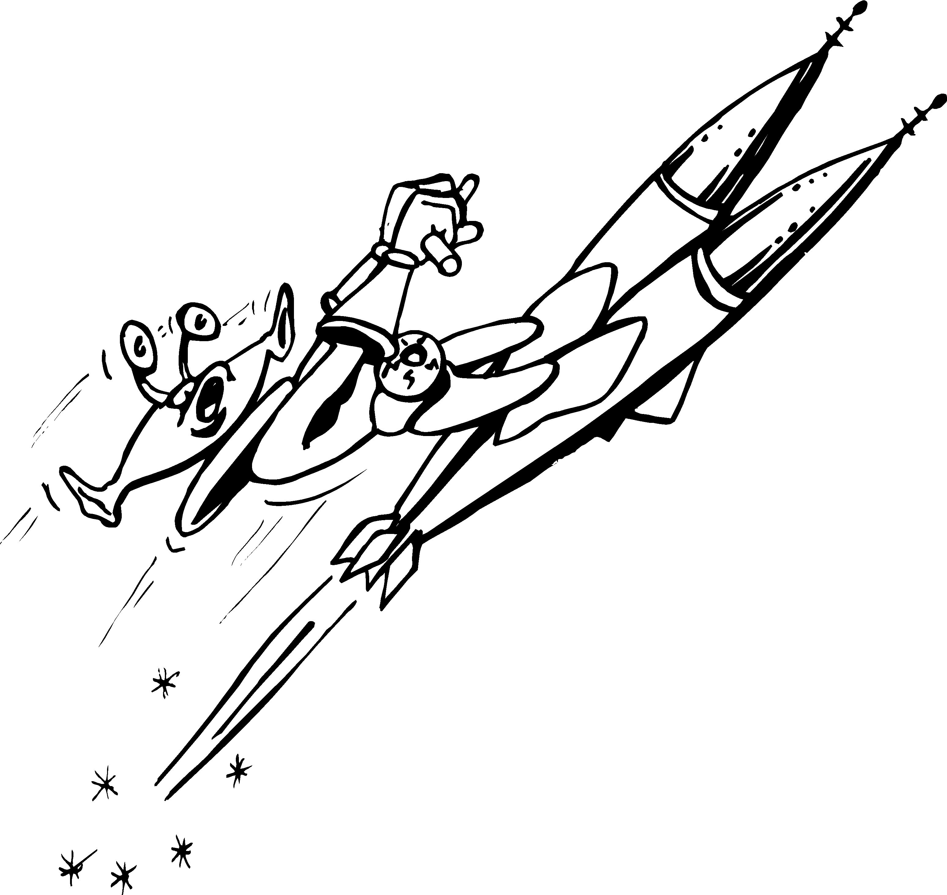 Space Alien on Rocket 2 Clip Art, Science Fiction