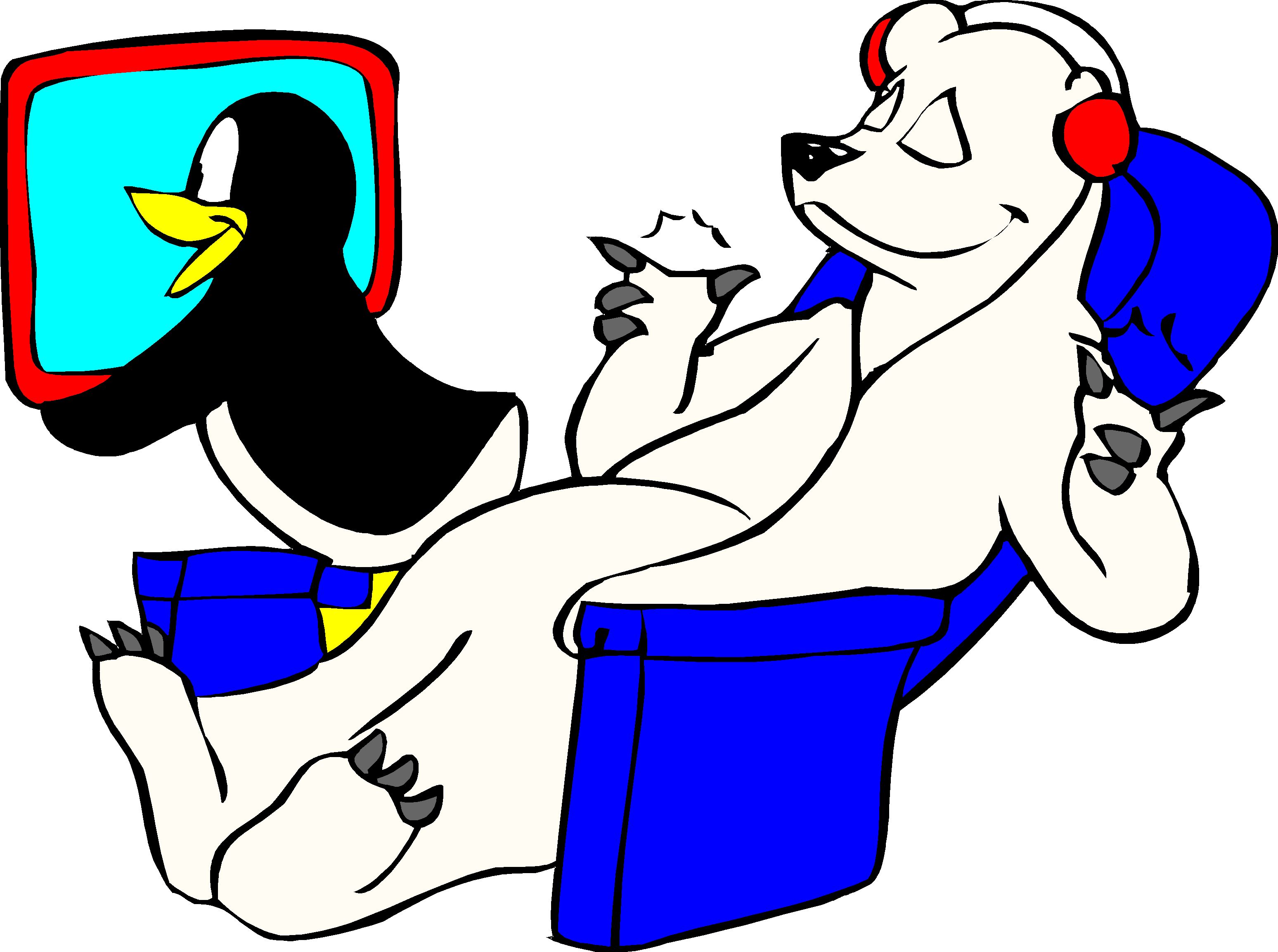 Bear & Penguin on Plane Clip Art, Travel & Leisure