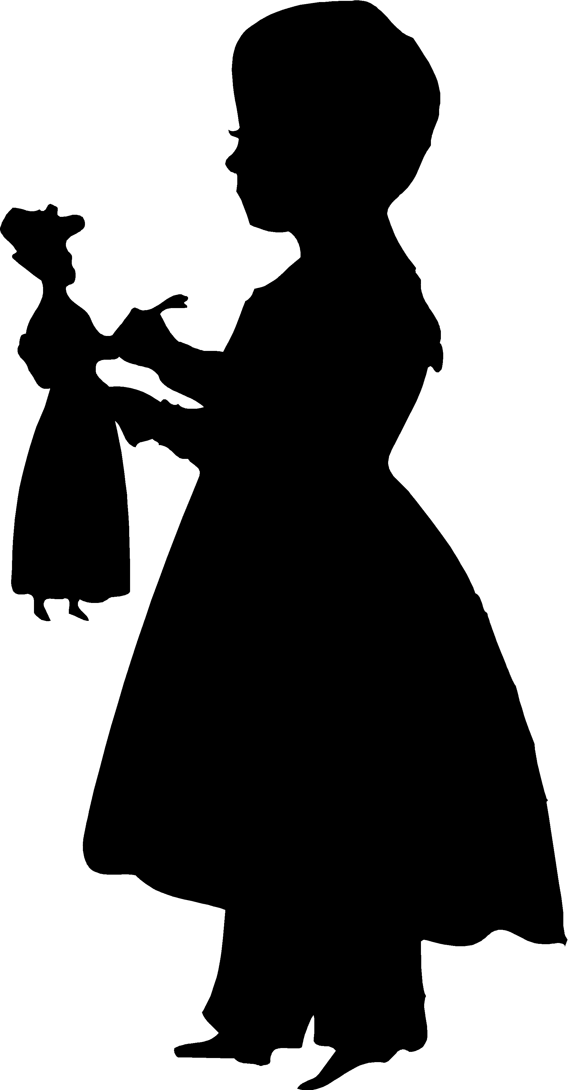 Silhouettes, Girl with Doll 3 Clip Art, Antique Style