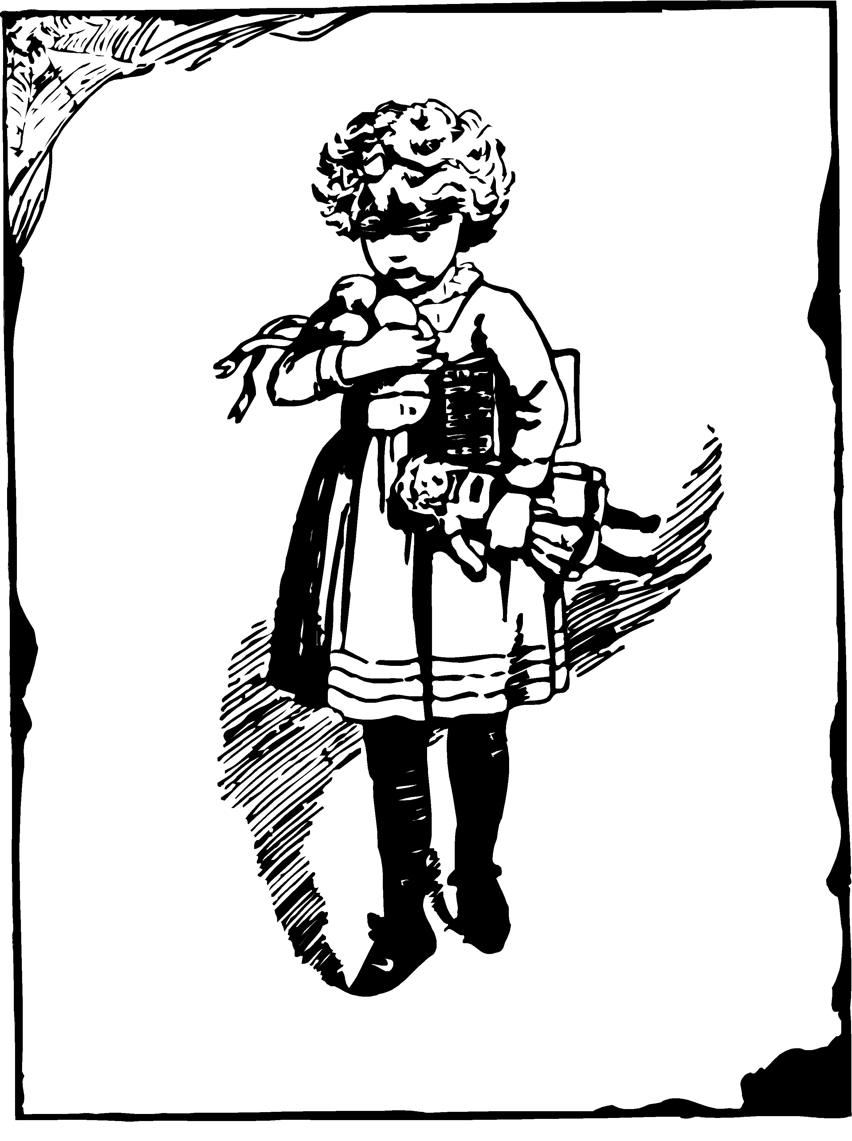 People, Girl Holding Dolls 1 Clip Art, Antique Style