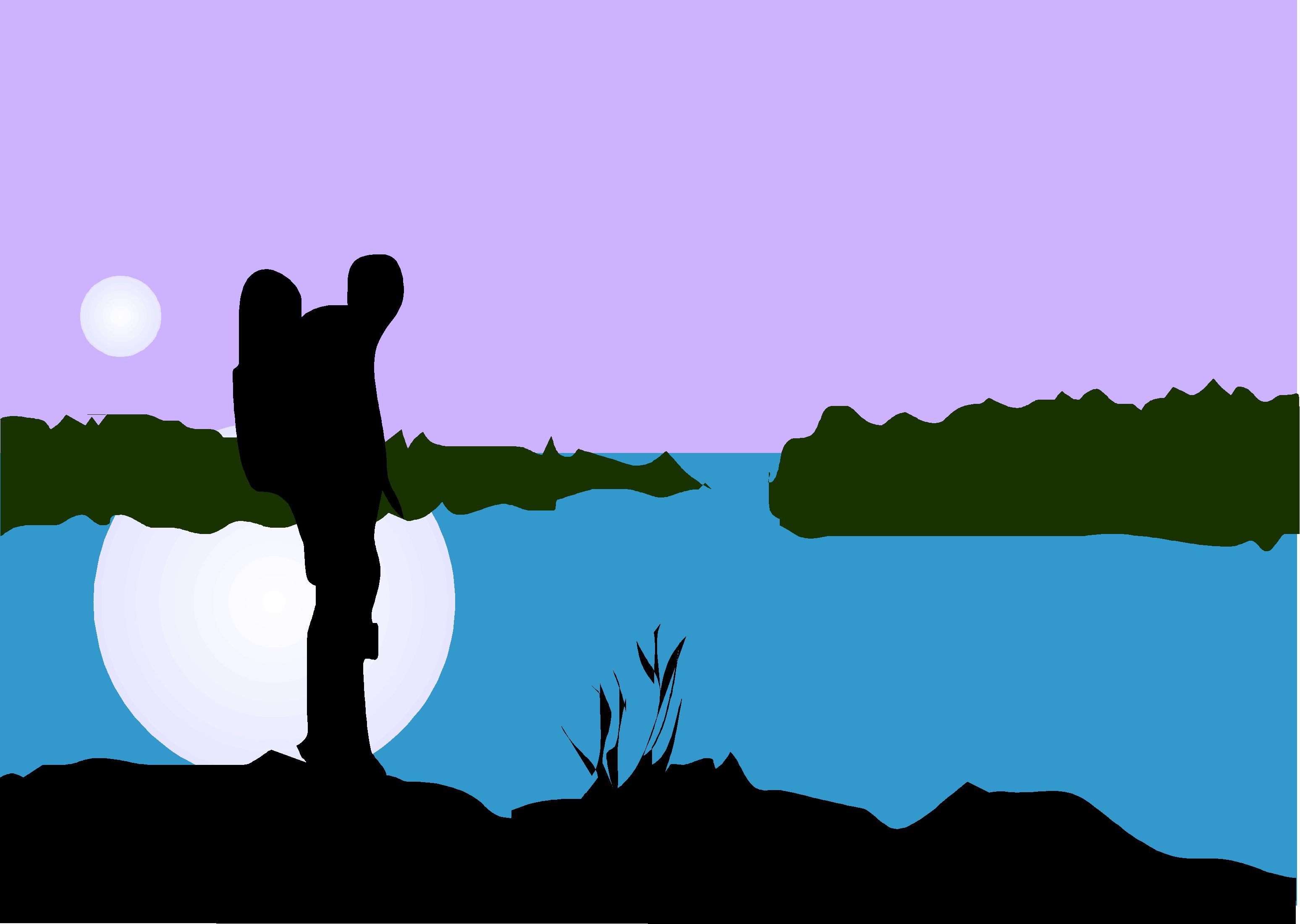 Hiker by Lake Clip Art, Outdoor Recreation