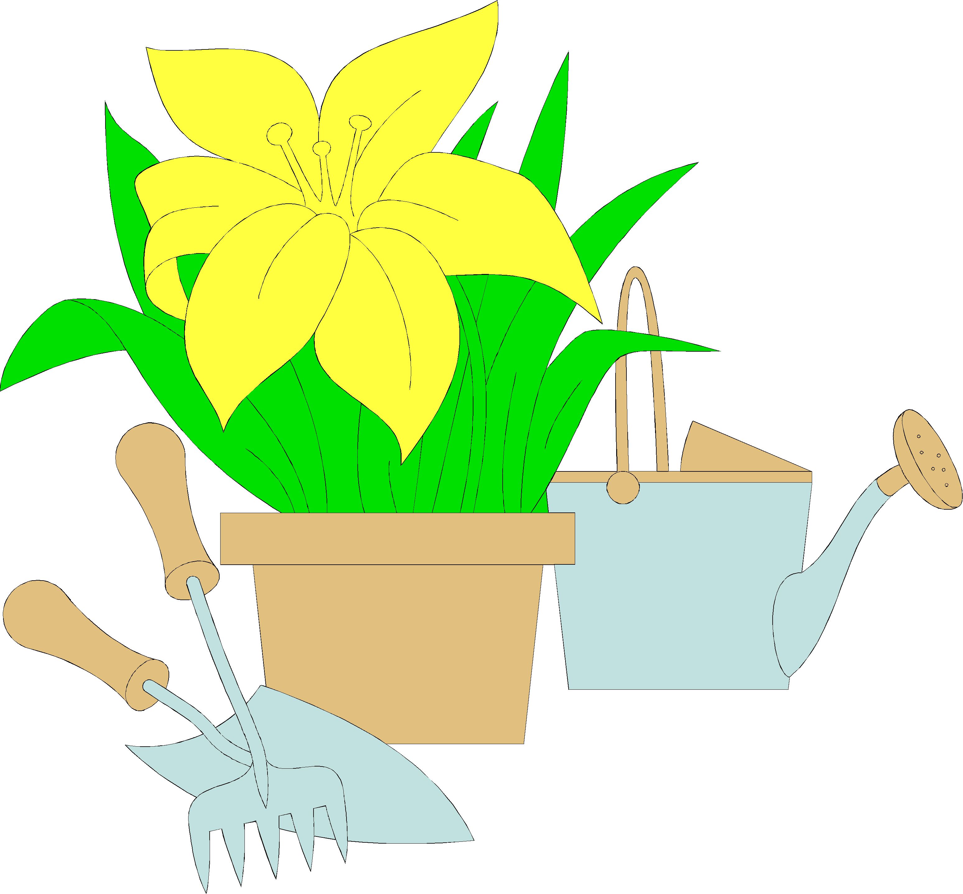 Flower Pot & Tools Clip Art, Gardening