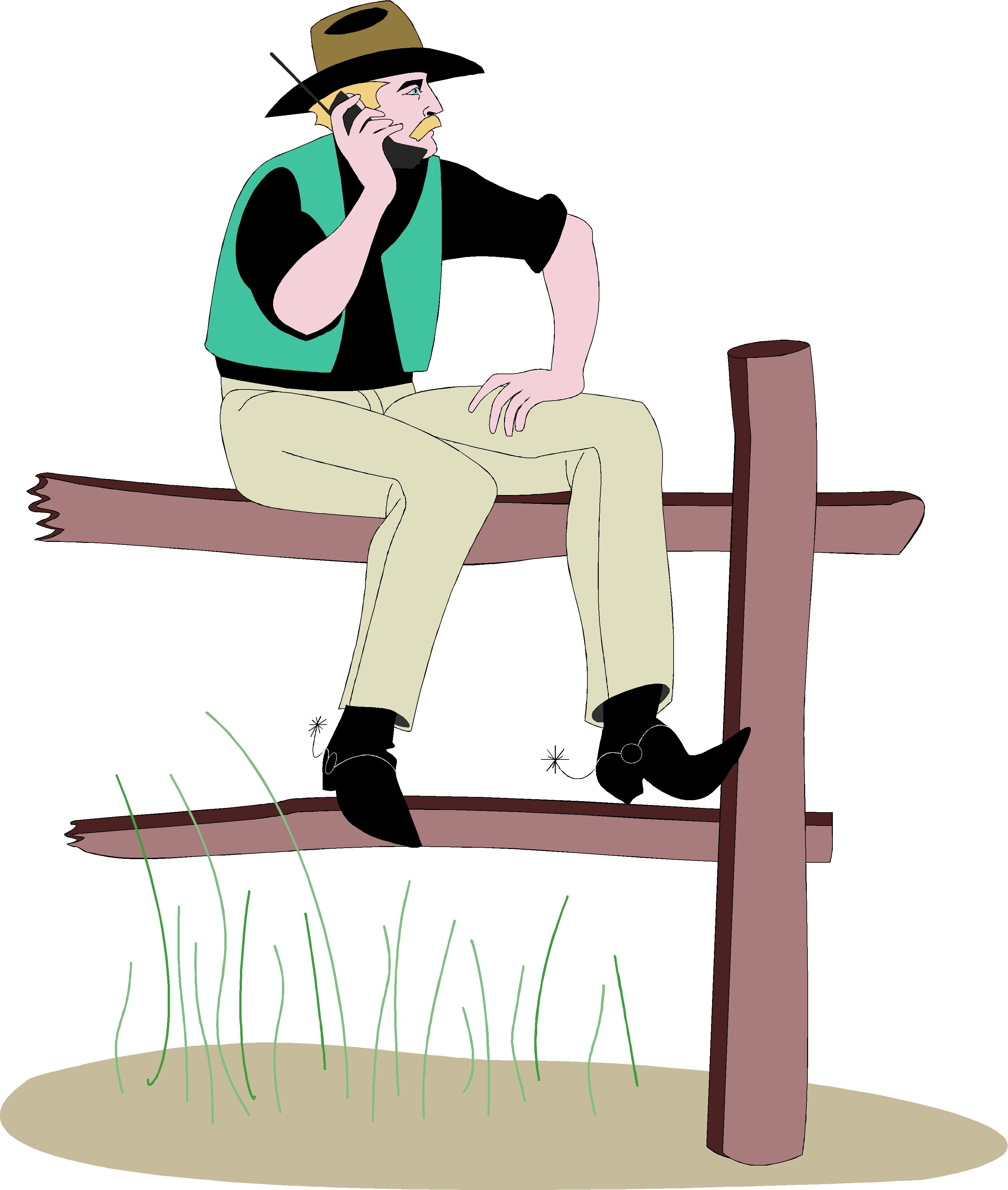 Cowboy on Cellular Phone Clip Art, Western & Rodeo