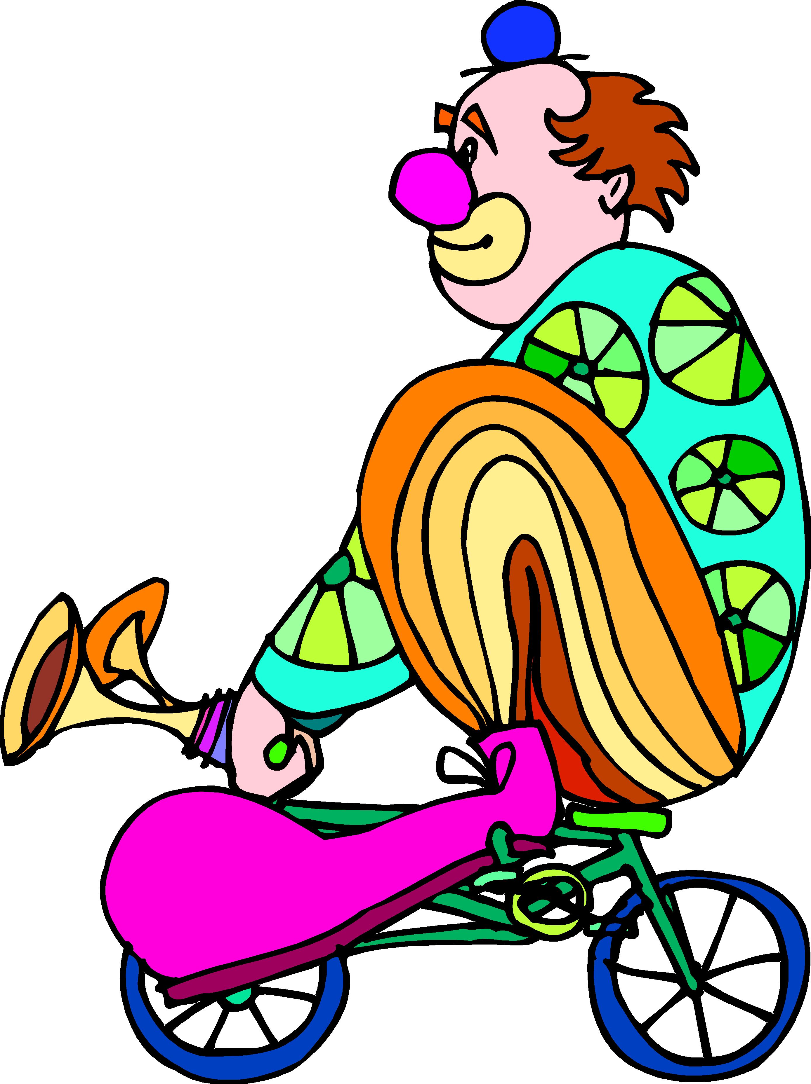 Clown on Bicycle Clip Art, Entertainment