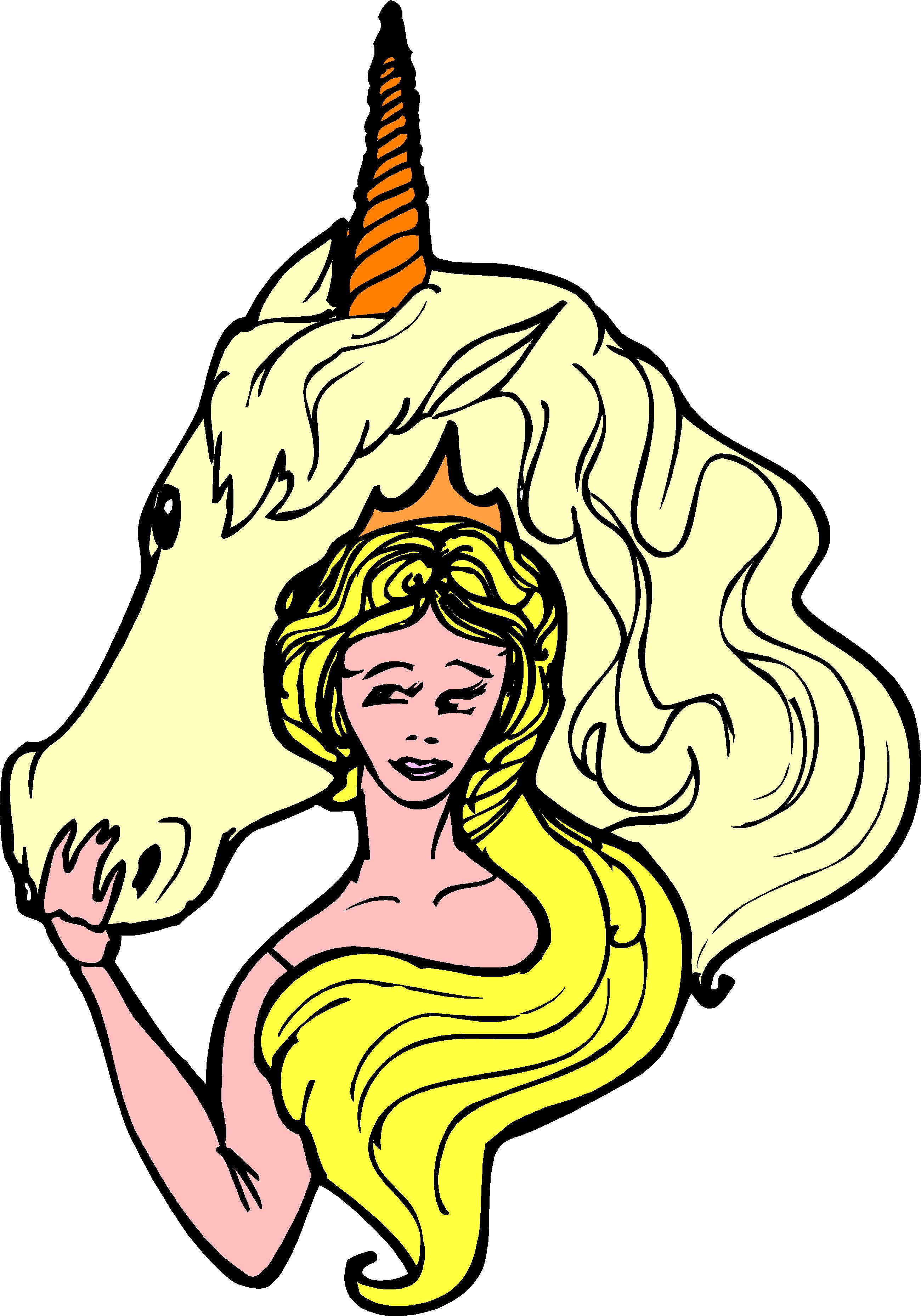 Unicorn & Woman Clip Art, Fantasy & Medieval
