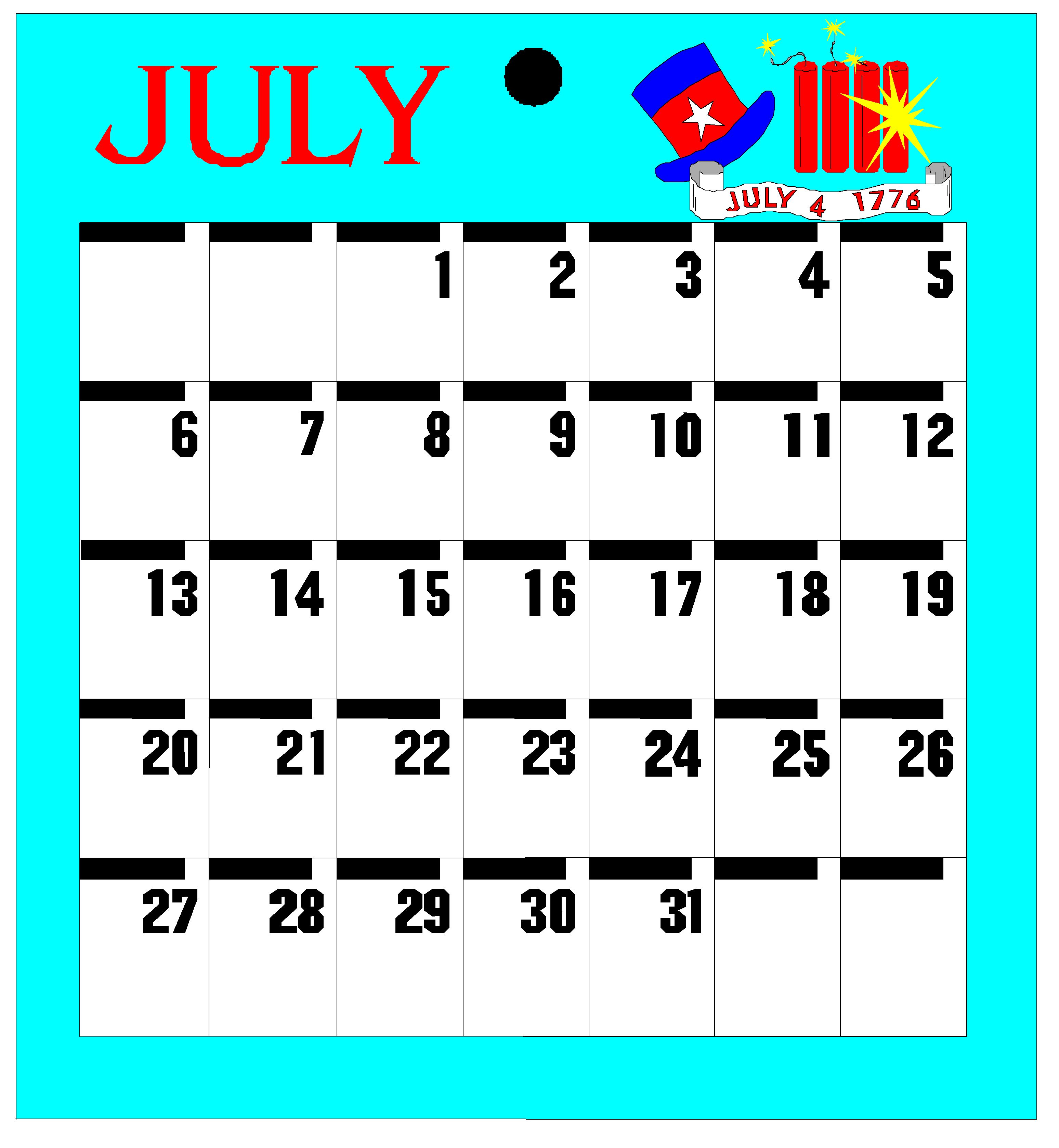 45 July - Tues Clip Art, Calendar